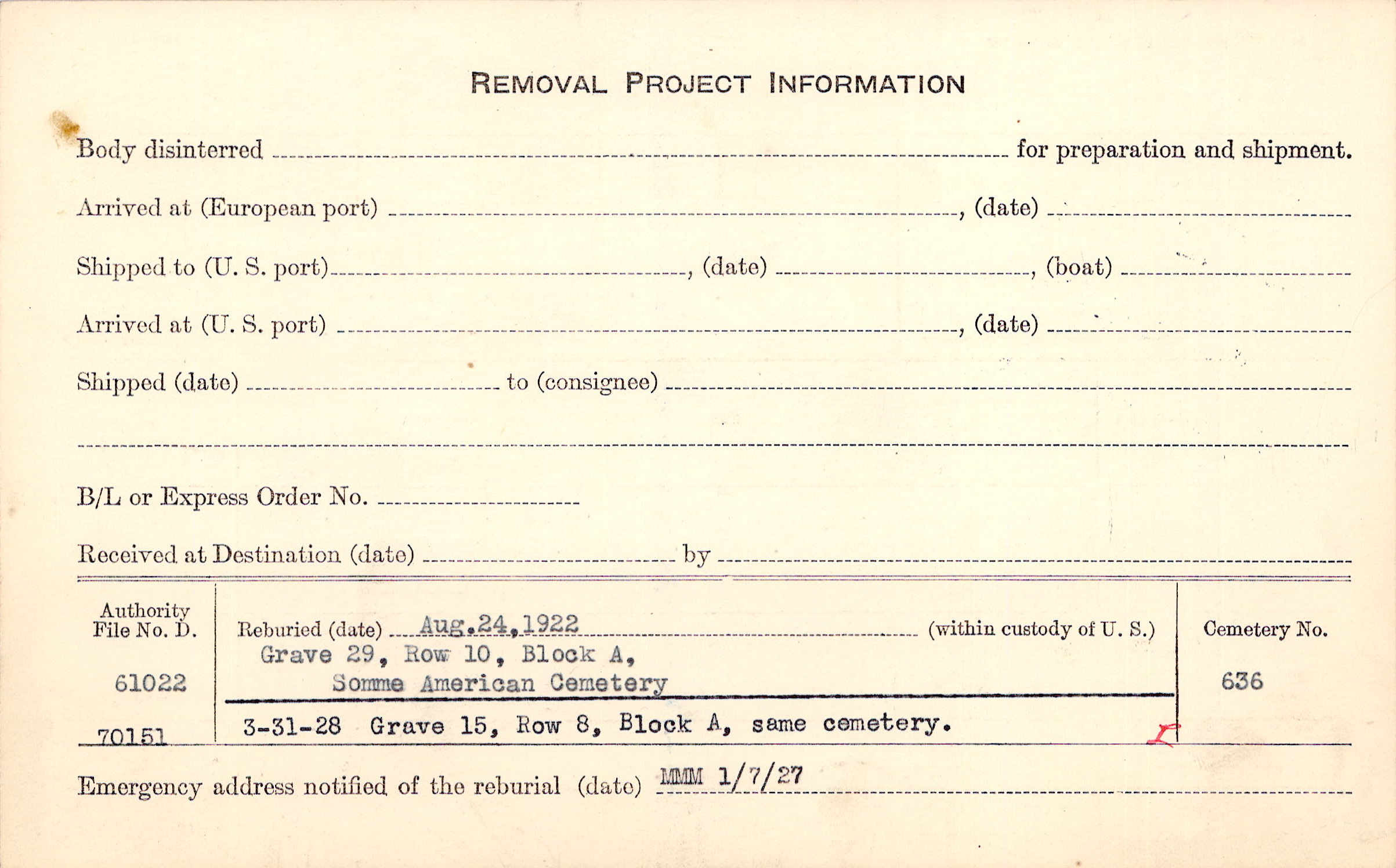Grave #15, Block R., Plot I, Row B., St. Sever Cty. Rouen, Seine, Inferieure.