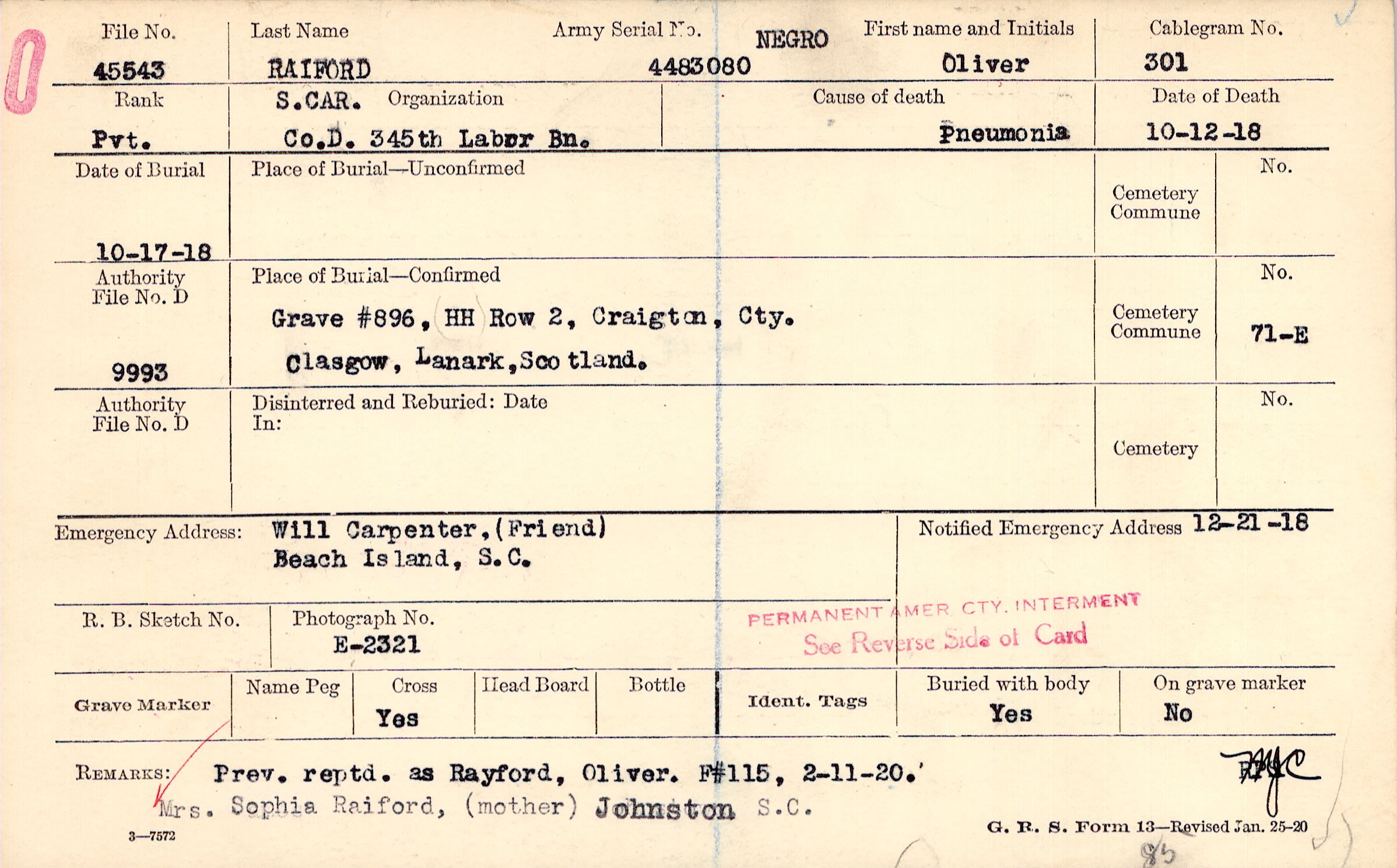 | Reburied (date): |