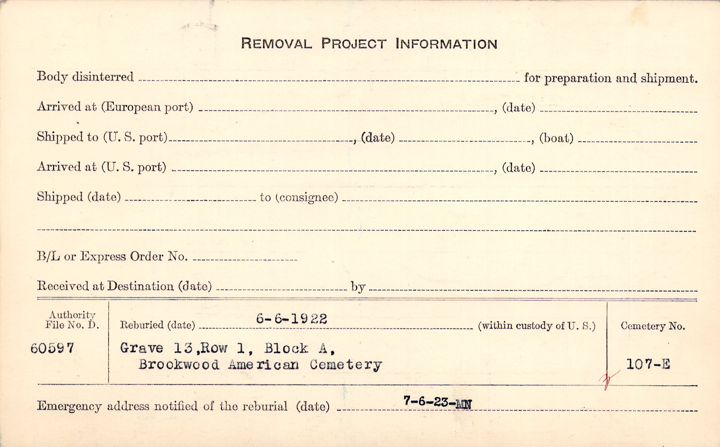 | Permanent Burial in Foreign Cemetery |