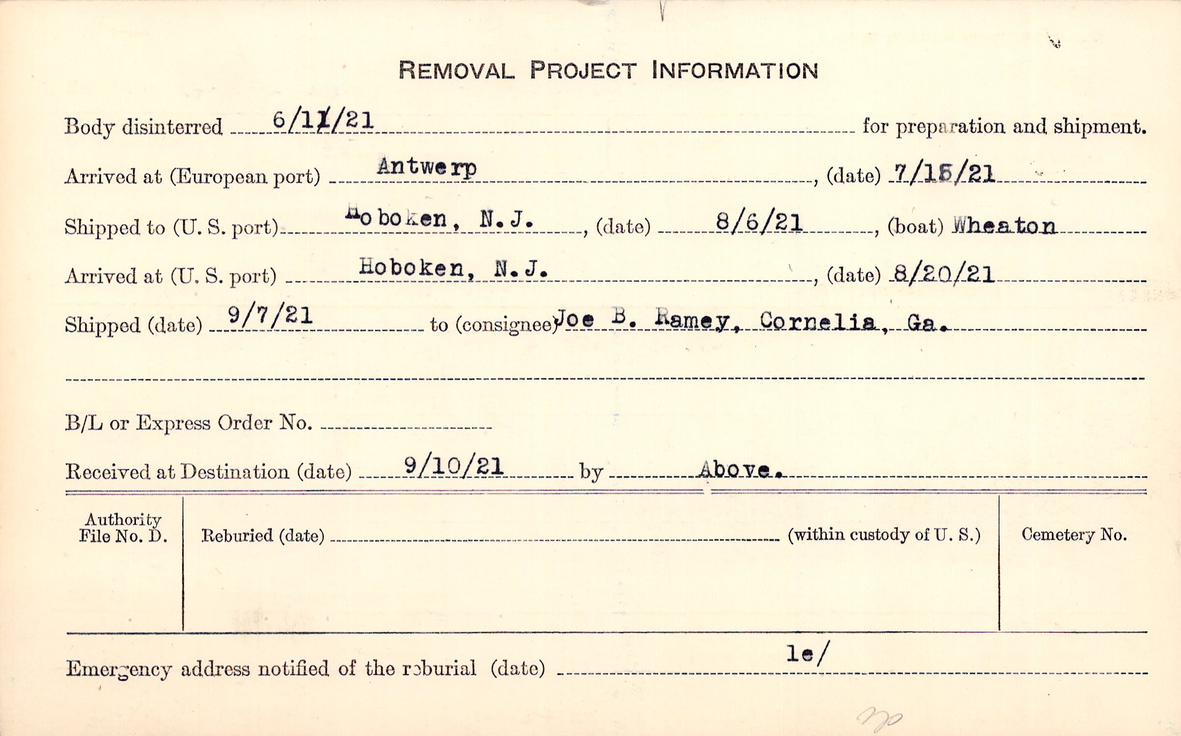 Joe B. Ramey,(Brother), Cornelia, Ga.