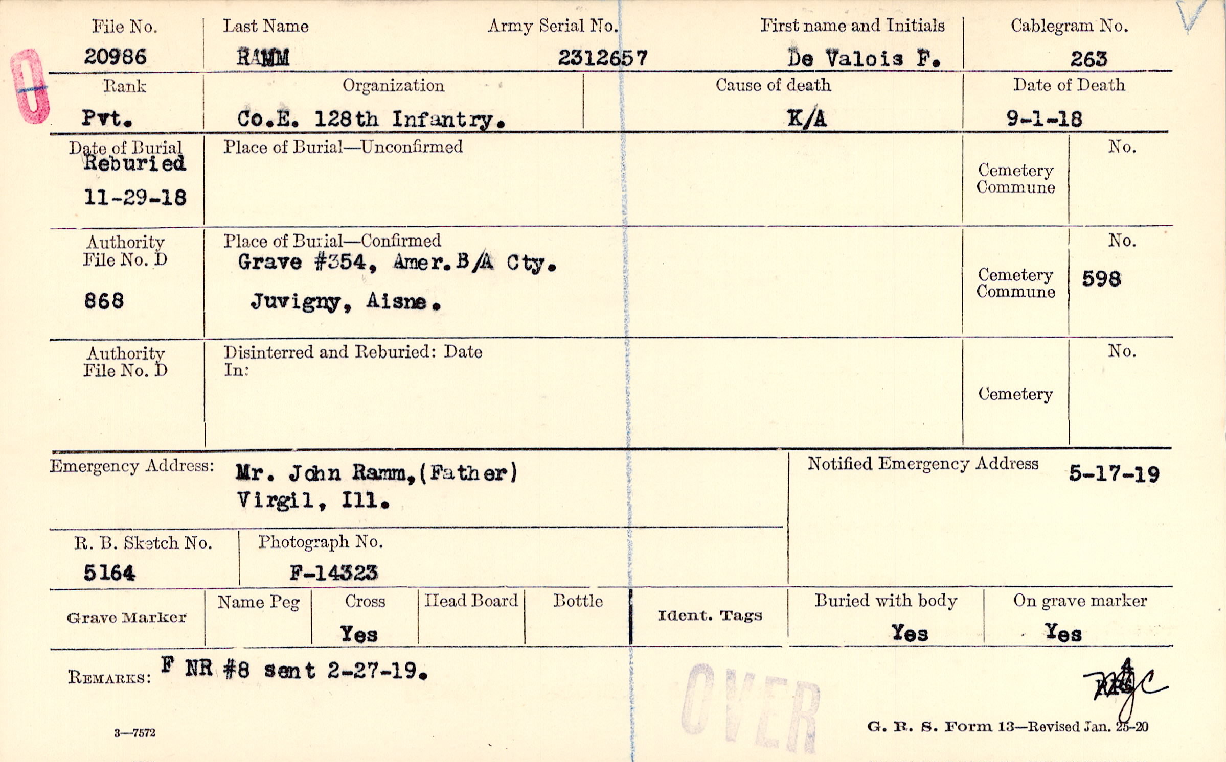 Grave #354, Amer. B/A Cty., Juvigny, Aisne.
