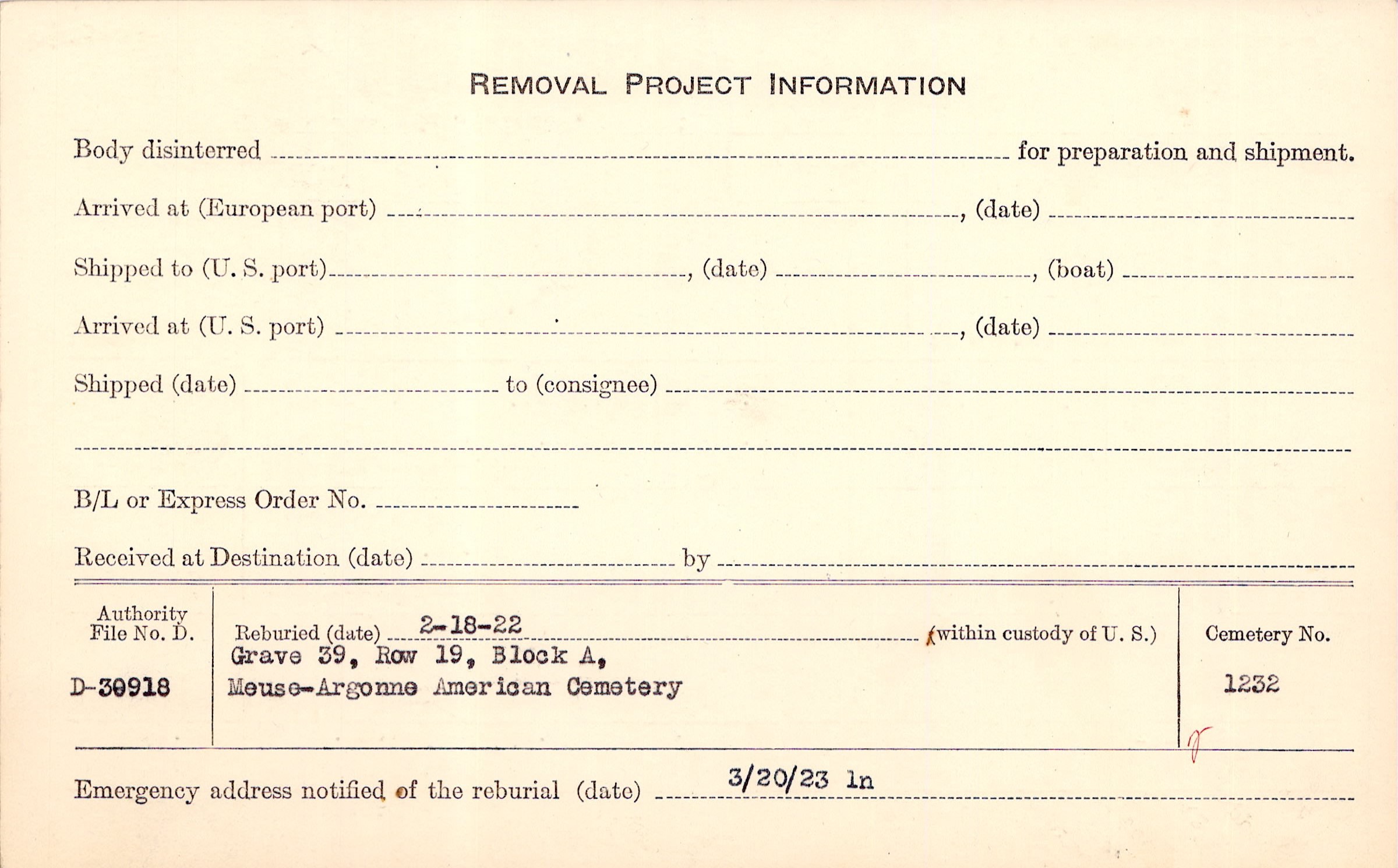 | Permanent Burial in Foreign Cemetery |