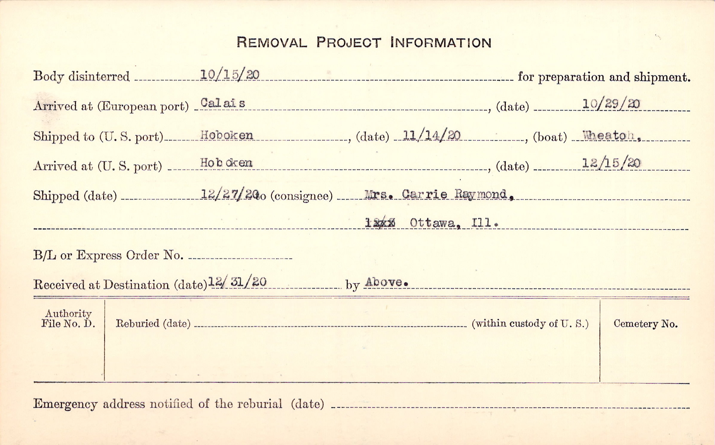 Nettie M. Raymond (Wife), 1003 Ottawa Ave., Ottawa, Ill.