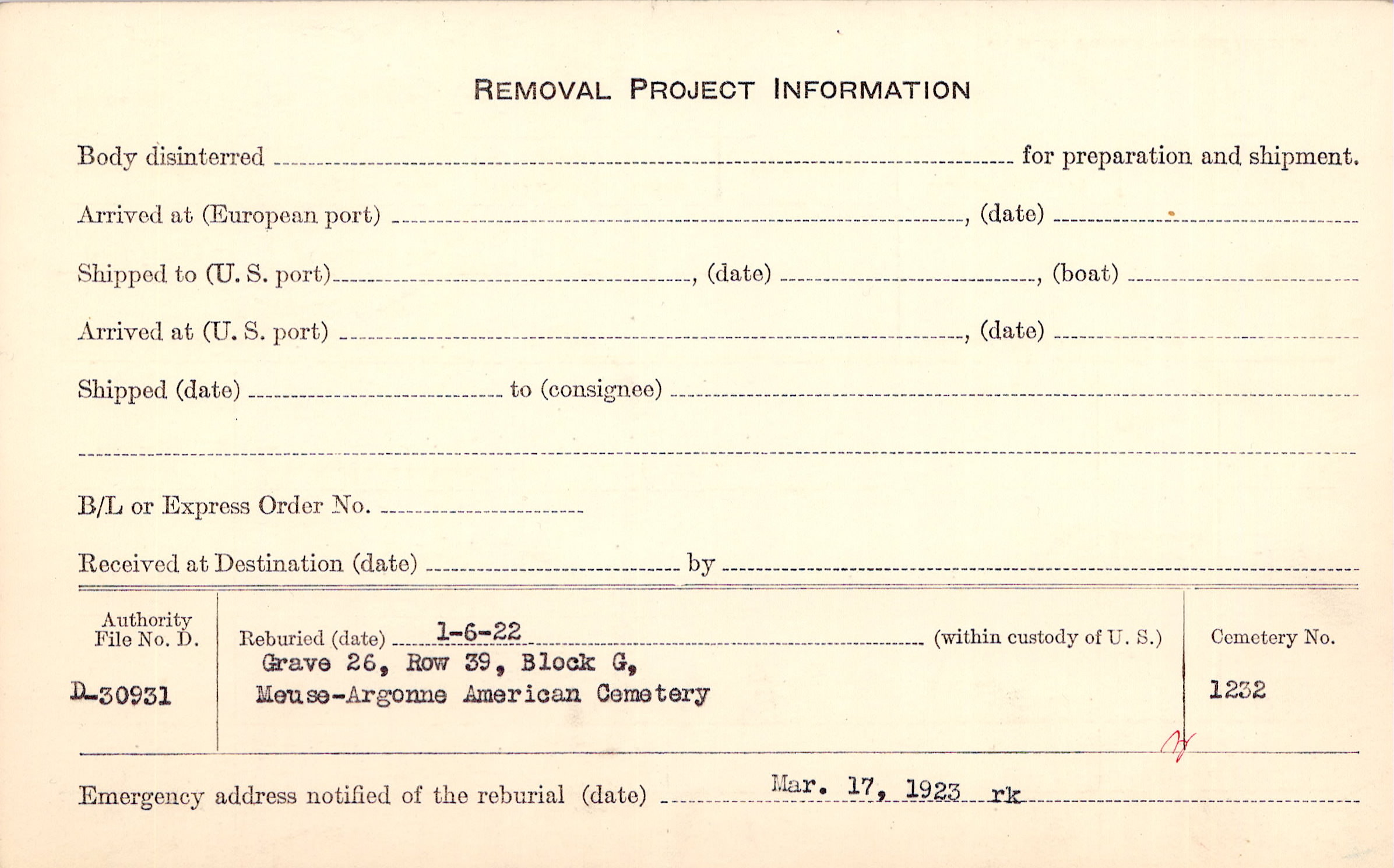 | Permanent Burial in Foreign Cemetery |