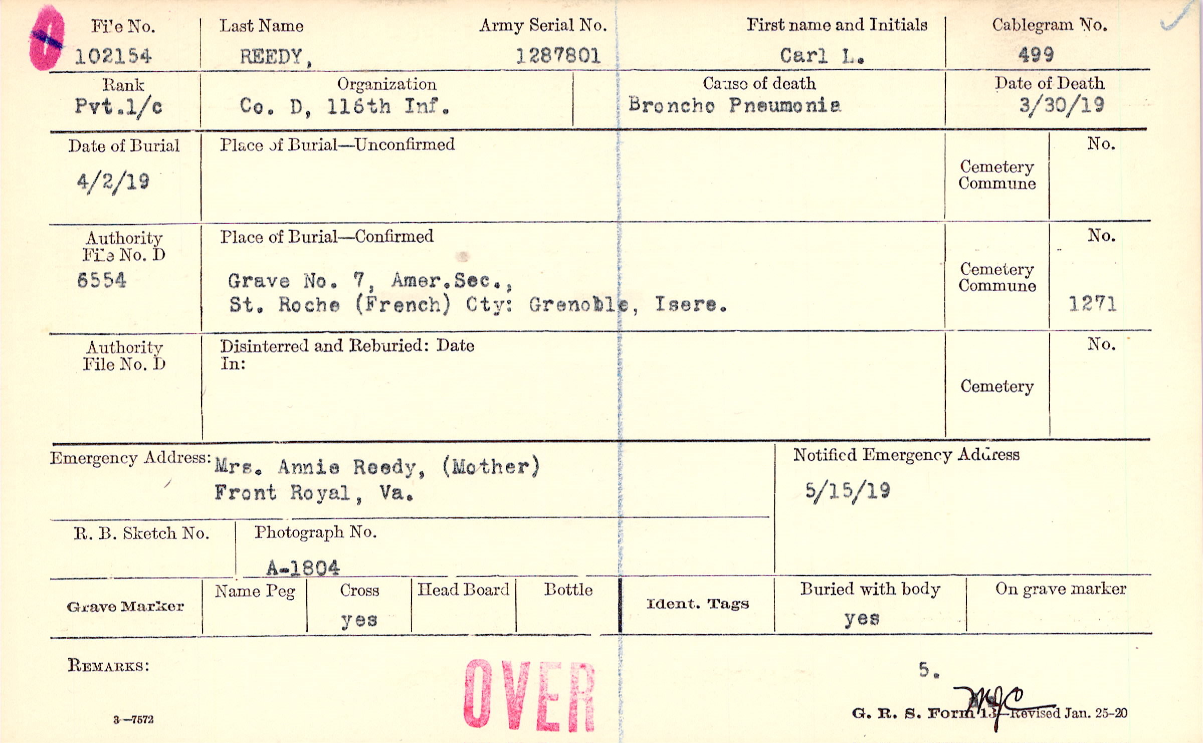 Grave 7, Amer. Sec., St. Roche French Cty., Grenoble, Isere
