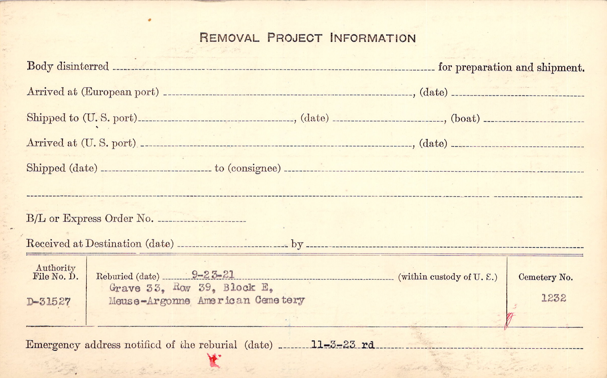 Grave 97, Section 108, Plot 2, Argonne American Cemetery, Romagne-sous-Montfaucon, Meuse