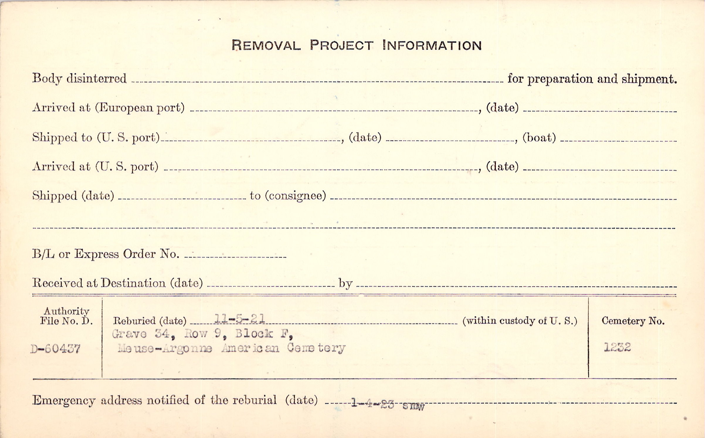 | Permanent Burial in Foreign Cemetery |