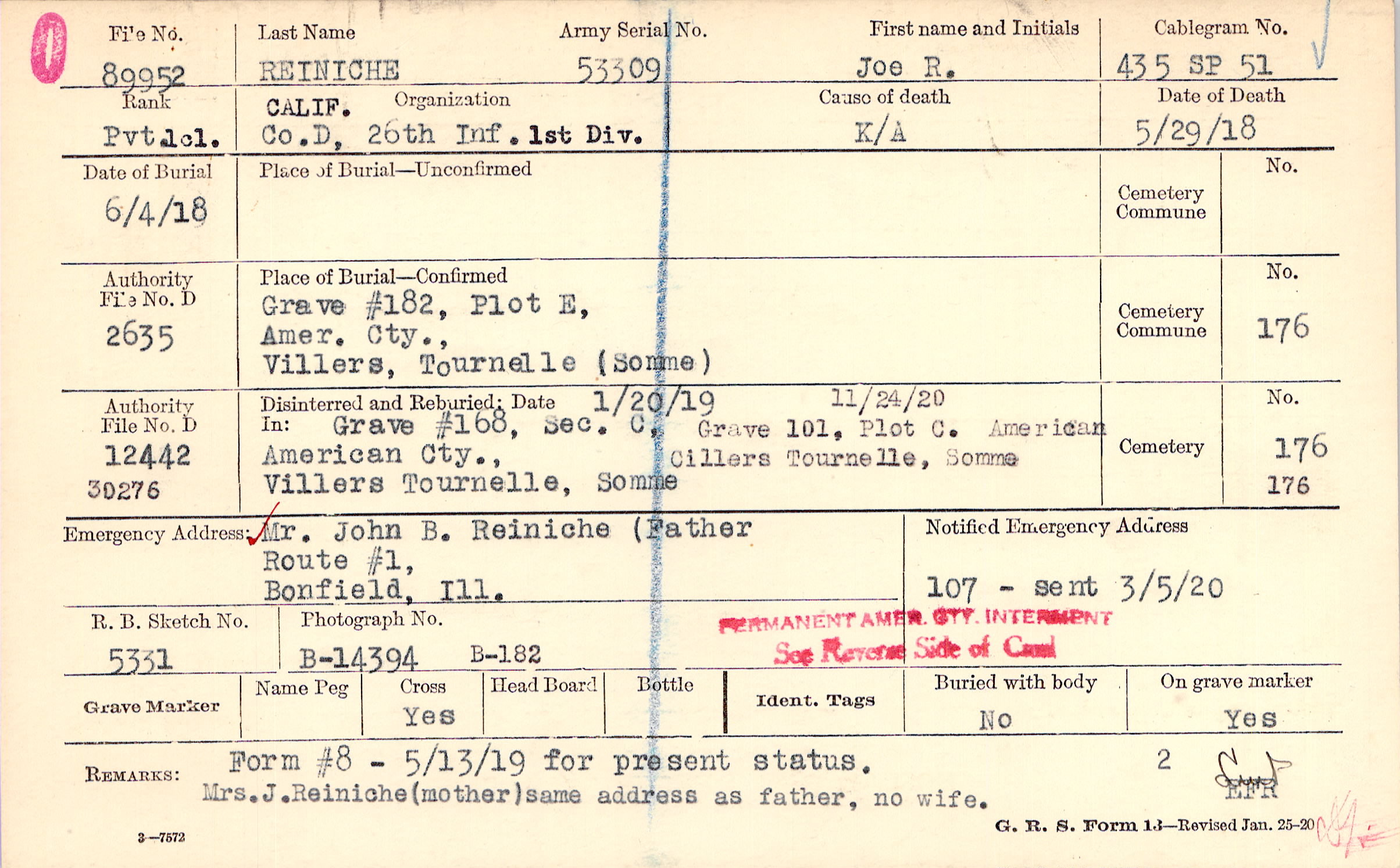 Prior Burial in Foreign Cemetery |
