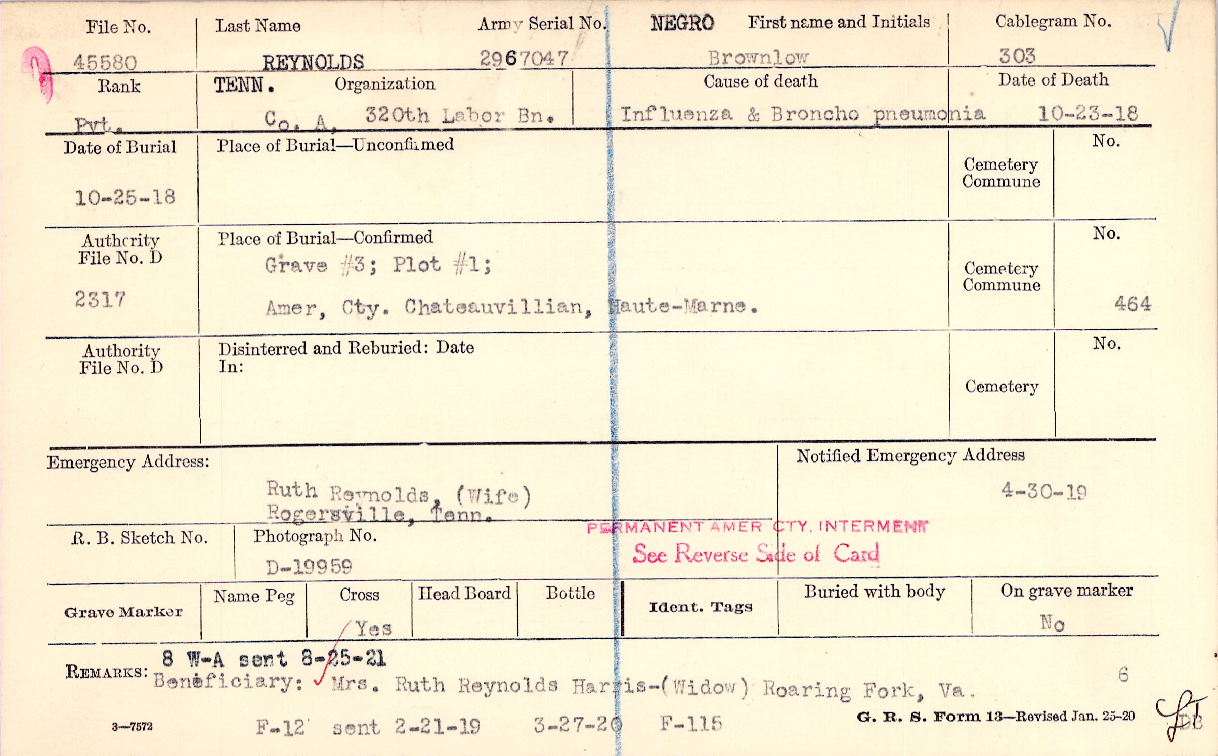 Grave #3, Plot #1,Amer. Cty.,Chateauvillian, Haute-Marne.