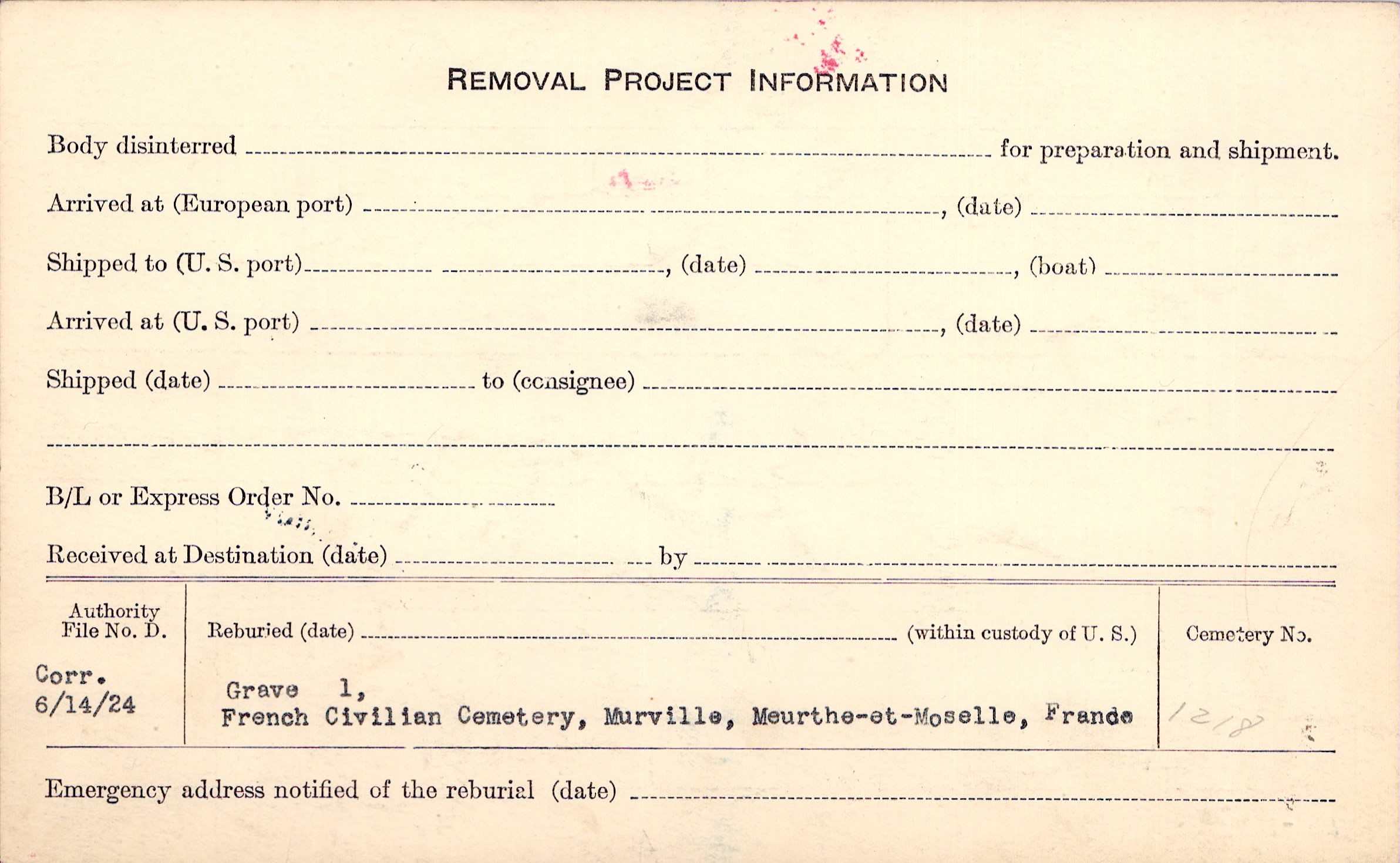 | Permanent Burial in Foreign Cemetery |