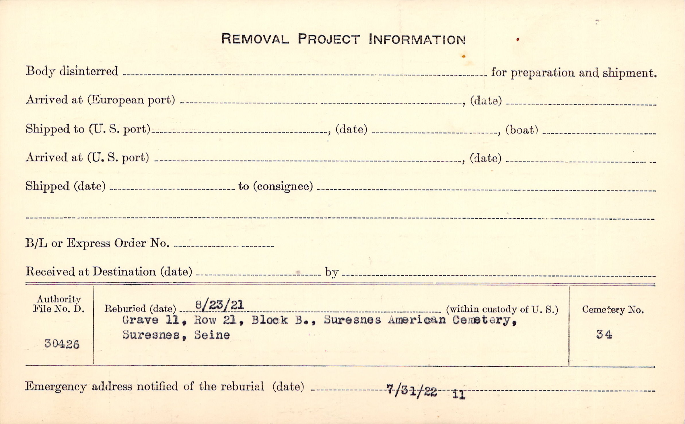Grave #141, Amer. Cty., Suresnes, Paris, Seine