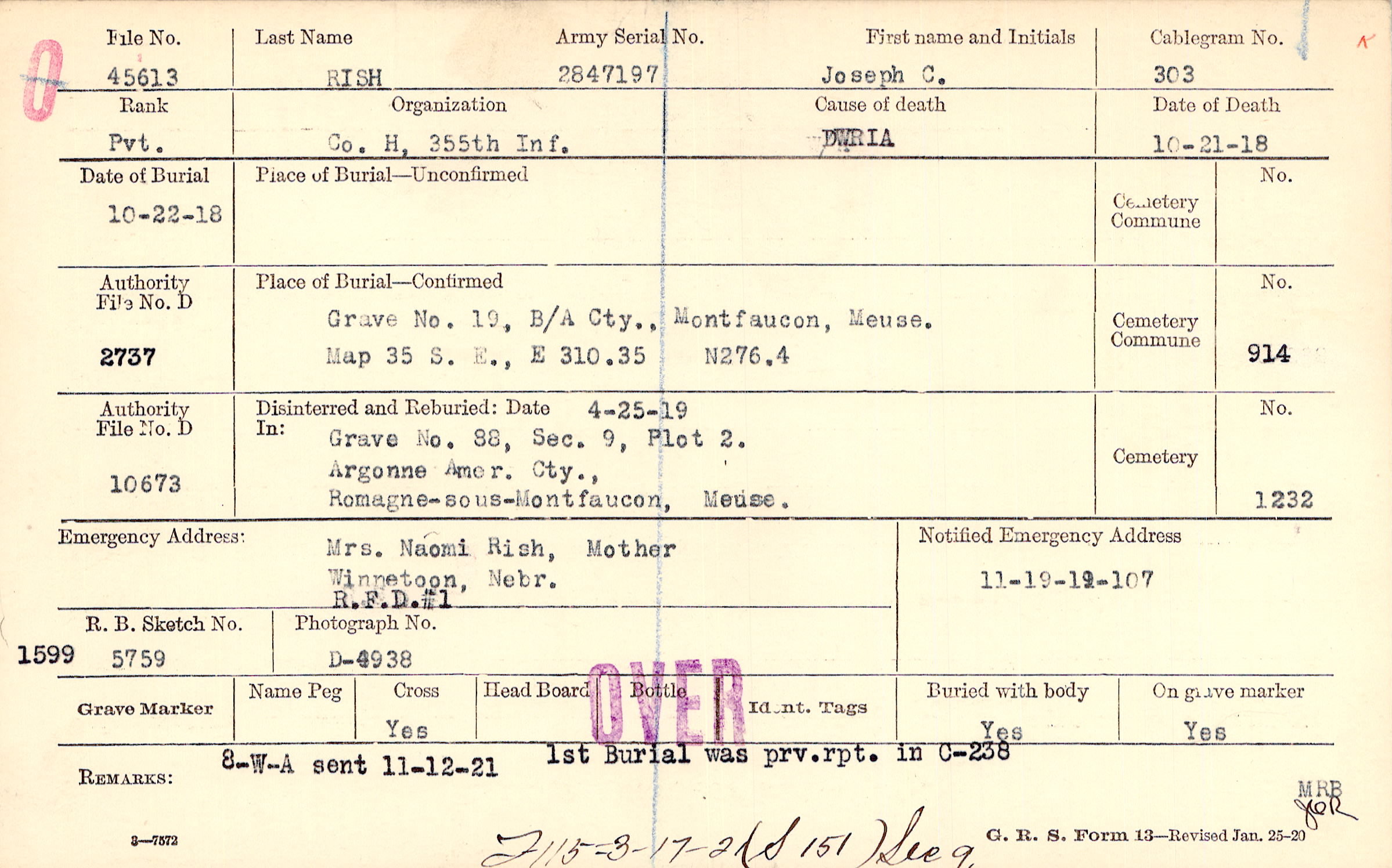 Grave 19, B/A Cty., Montfaucon, Meuse, Map 35 S. E.