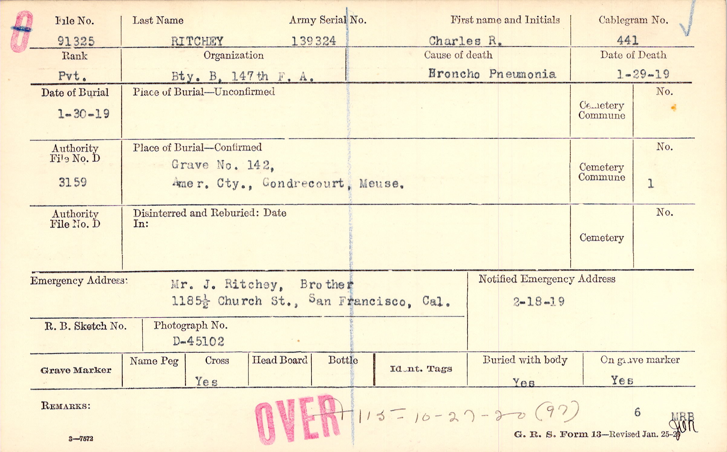 Grave 142, Amer. Cty., Gondrecourt, Meuse