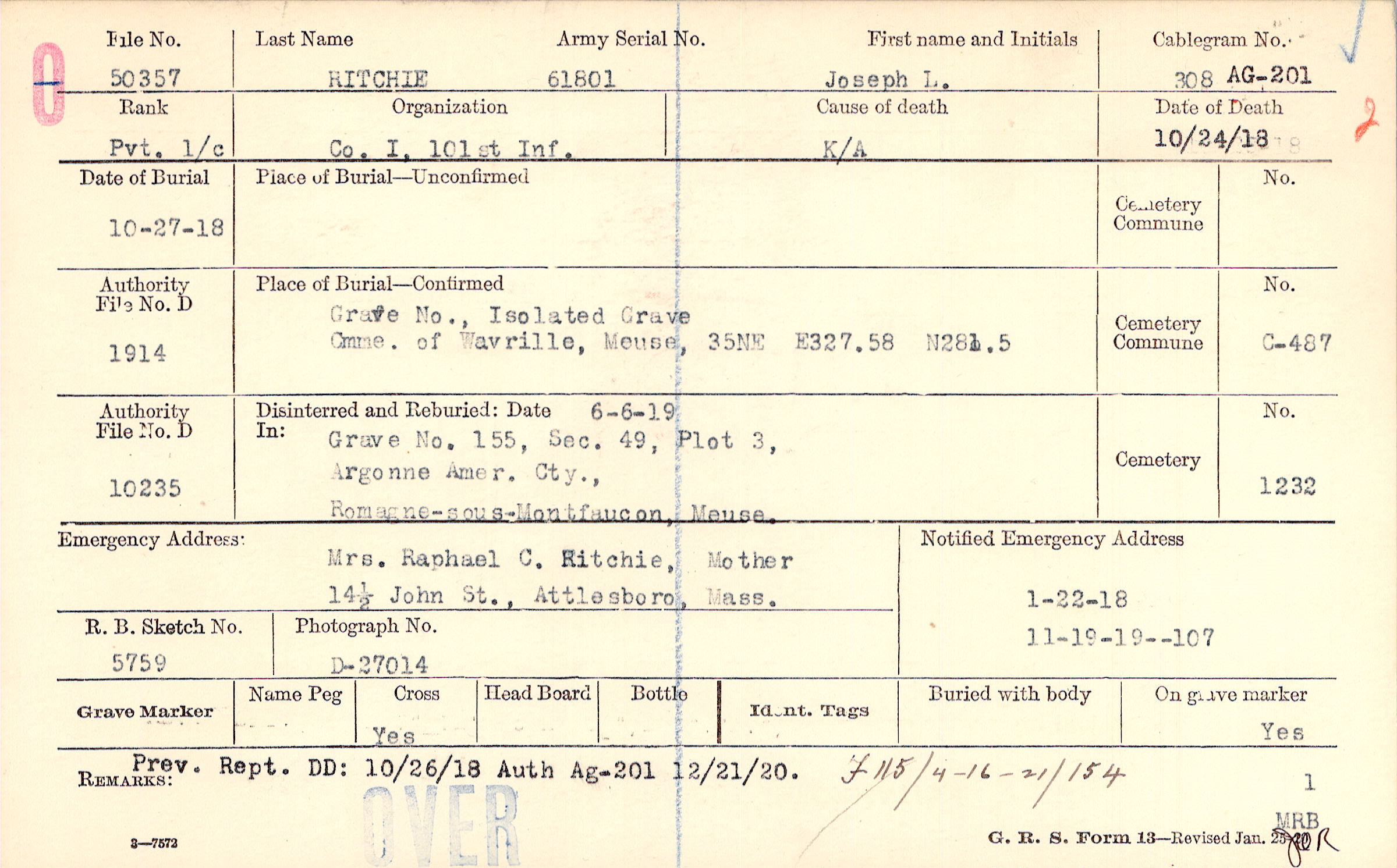 Grave , Isolated Grave, Cmme. of Wavrille, Meuse, 35NE