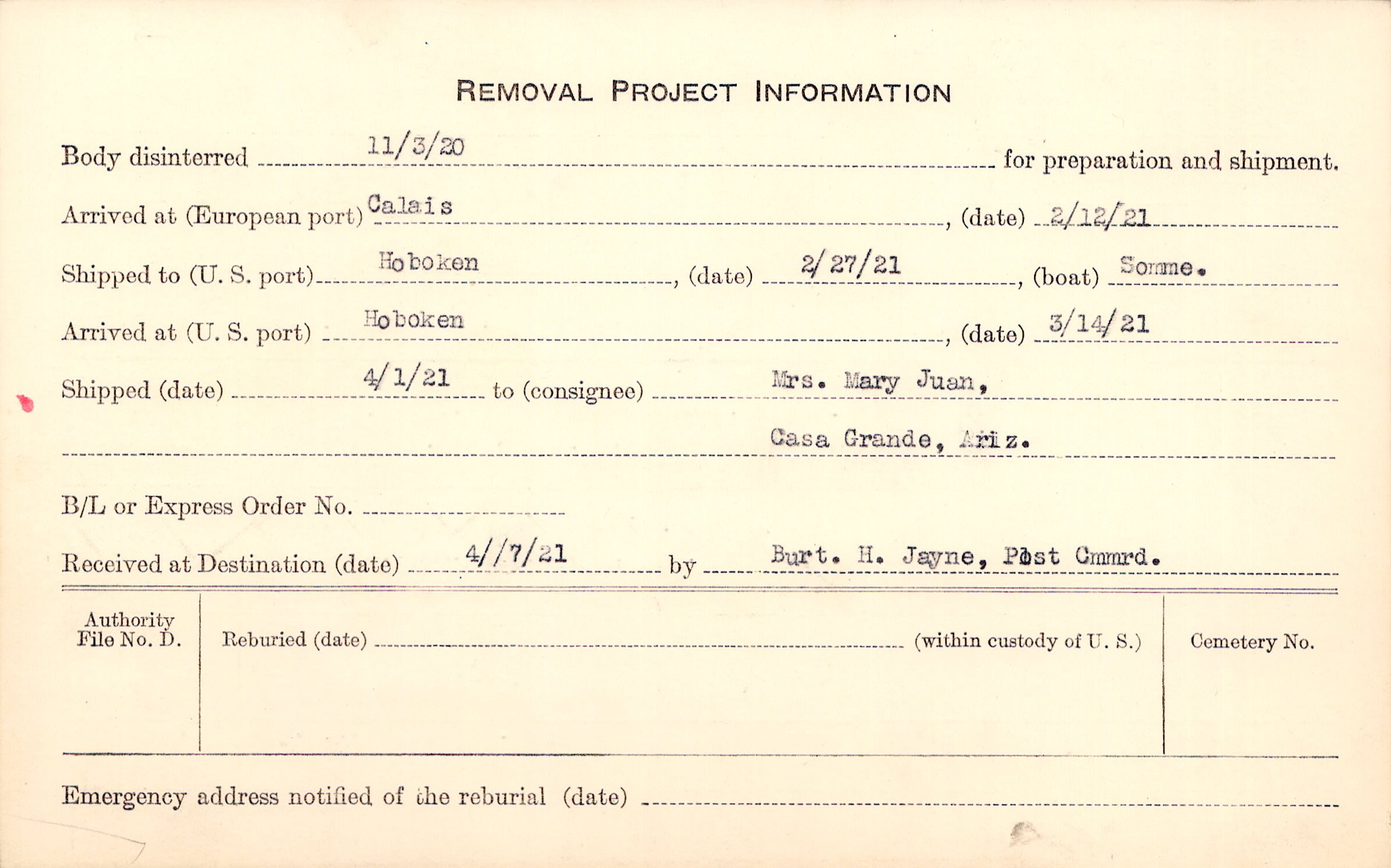 to Mrs. Mary Juan, Casa Grande, Ariz.