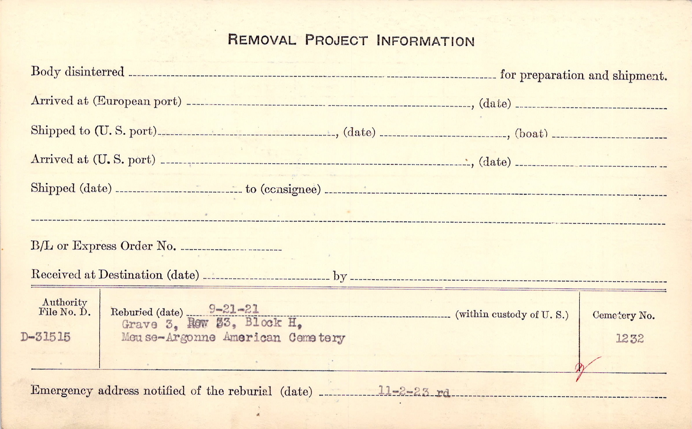 | Permanent Burial in Foreign Cemetery |
