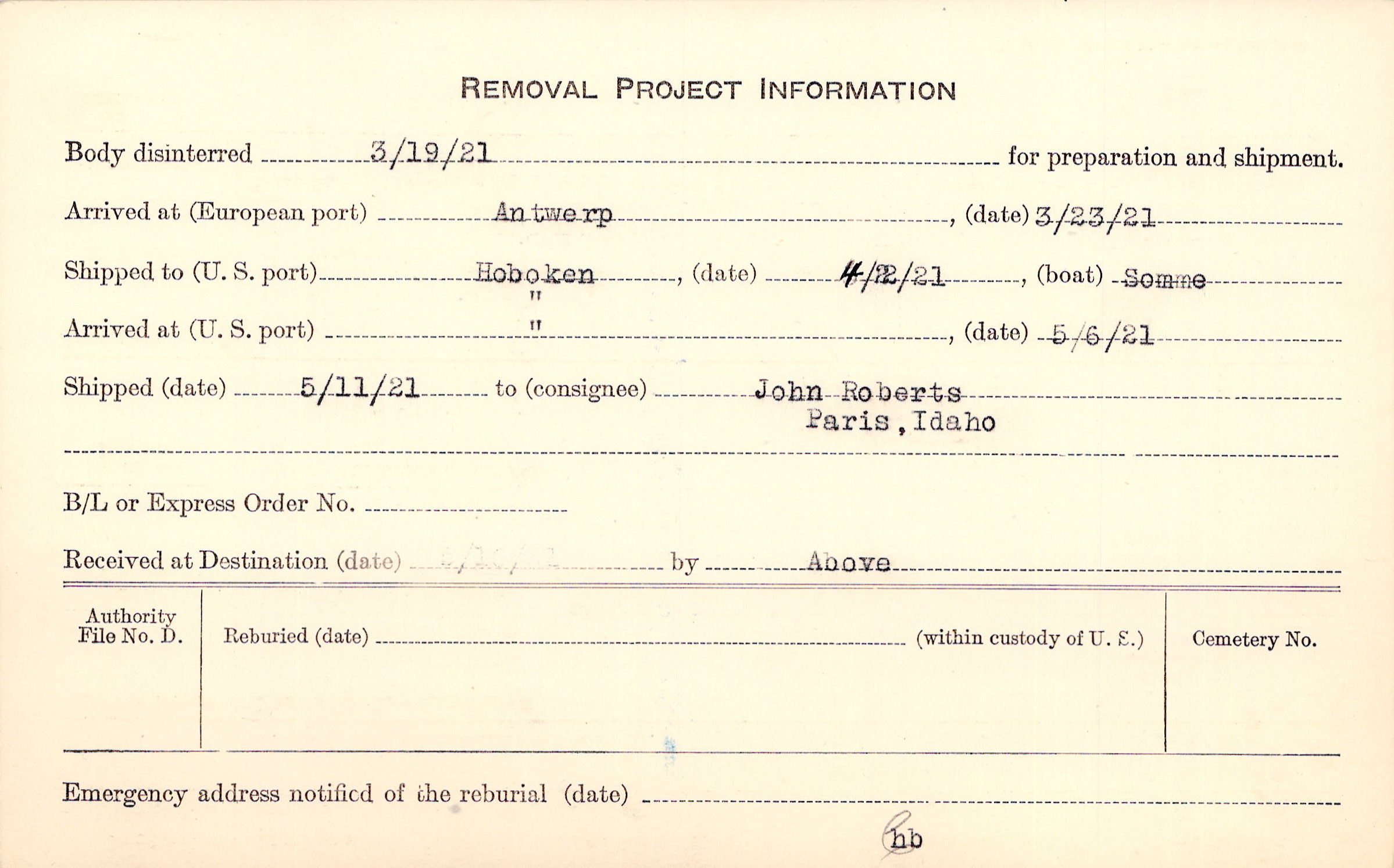 Grave #5, American Cty. Anseghem (Kleine Leistraat) Belgium.