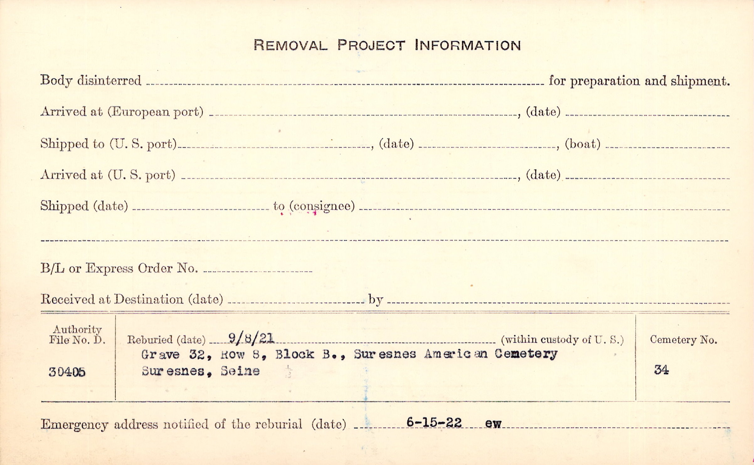 | Permanent Burial in Foreign Cemetery |