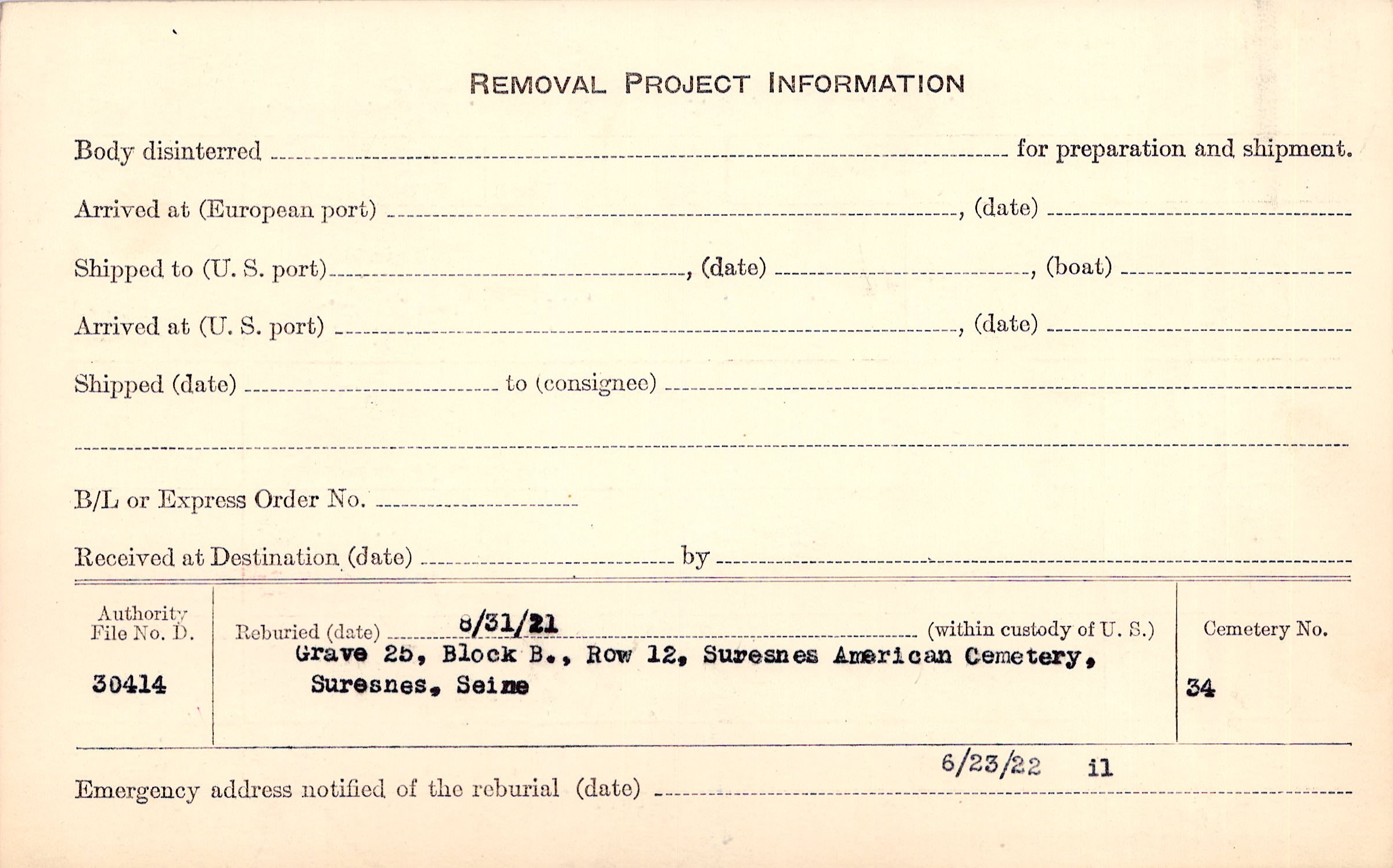 Grave 1238, Amer. Cty., Suresnes, Paris, Seine