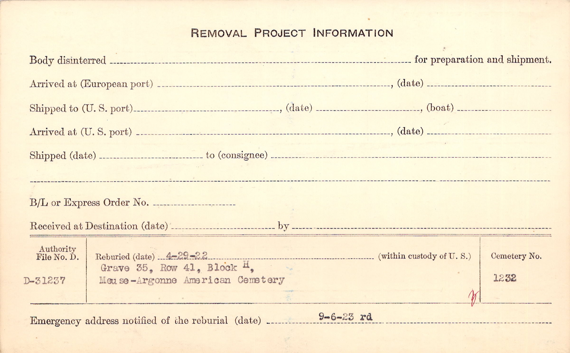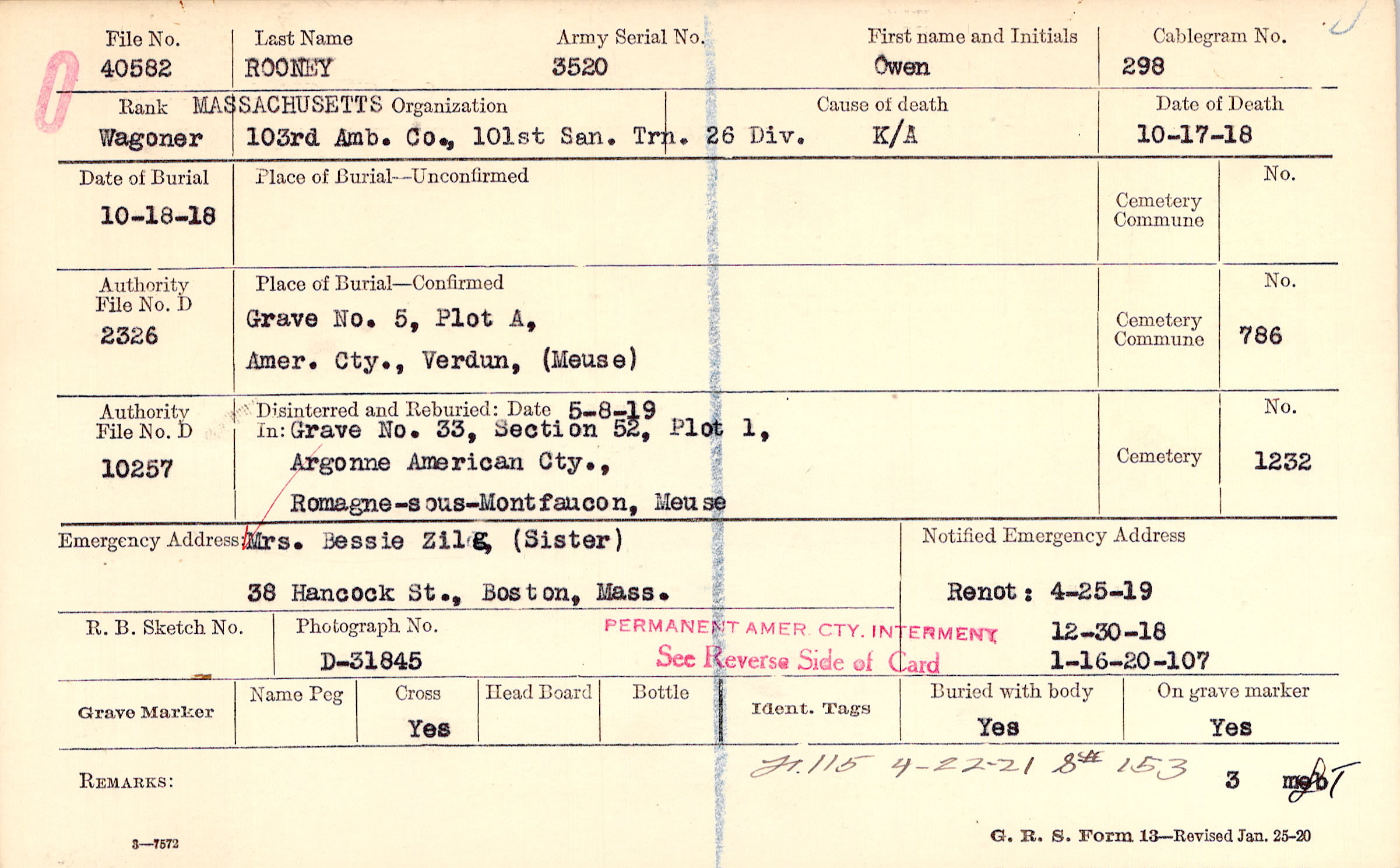 Grave 5, Plot A,Amer. Cty., Verdun, (Meuse)