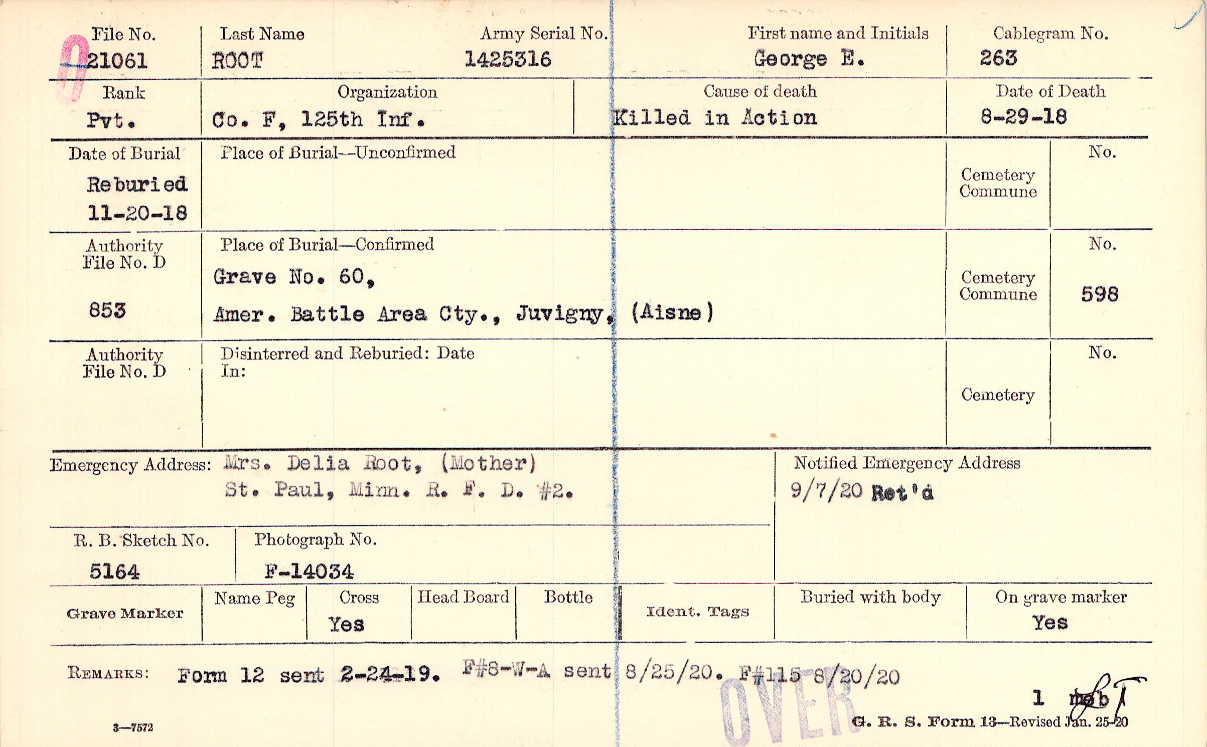Mrs. Delia Root, (Mother), St. Paul, Minn. R. F. D. #2., R. F. D. #2.