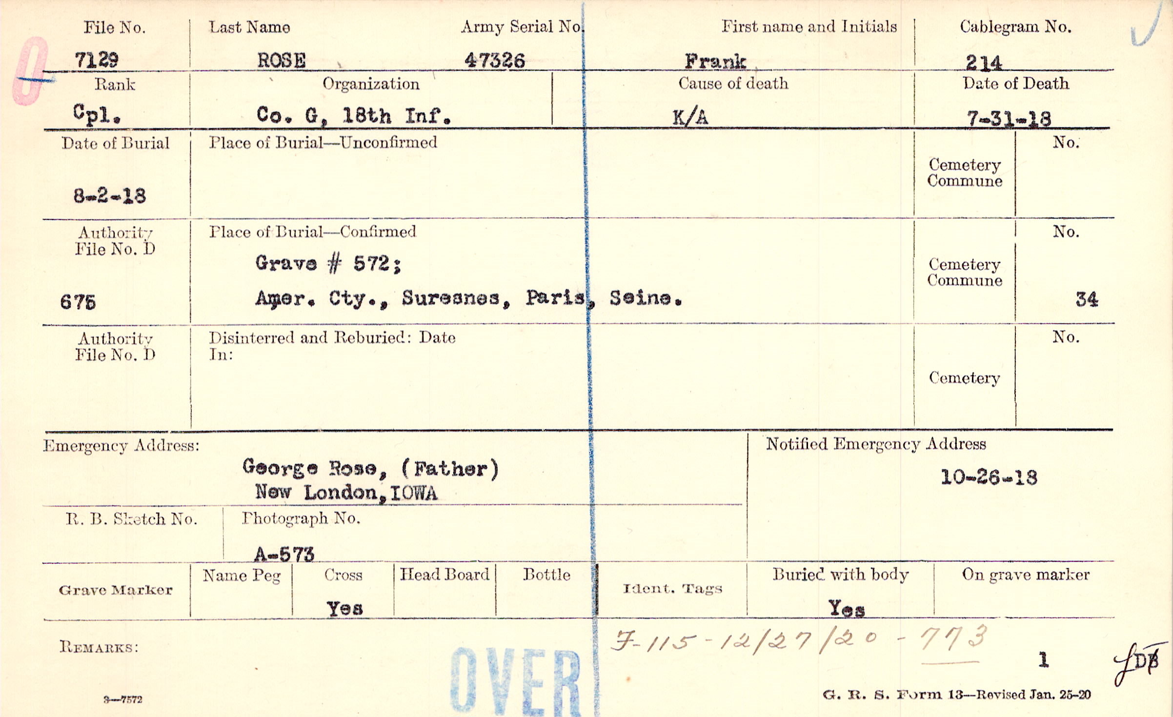 Grave # 572, Amer. Cty., Suresnes, Paris, Seine