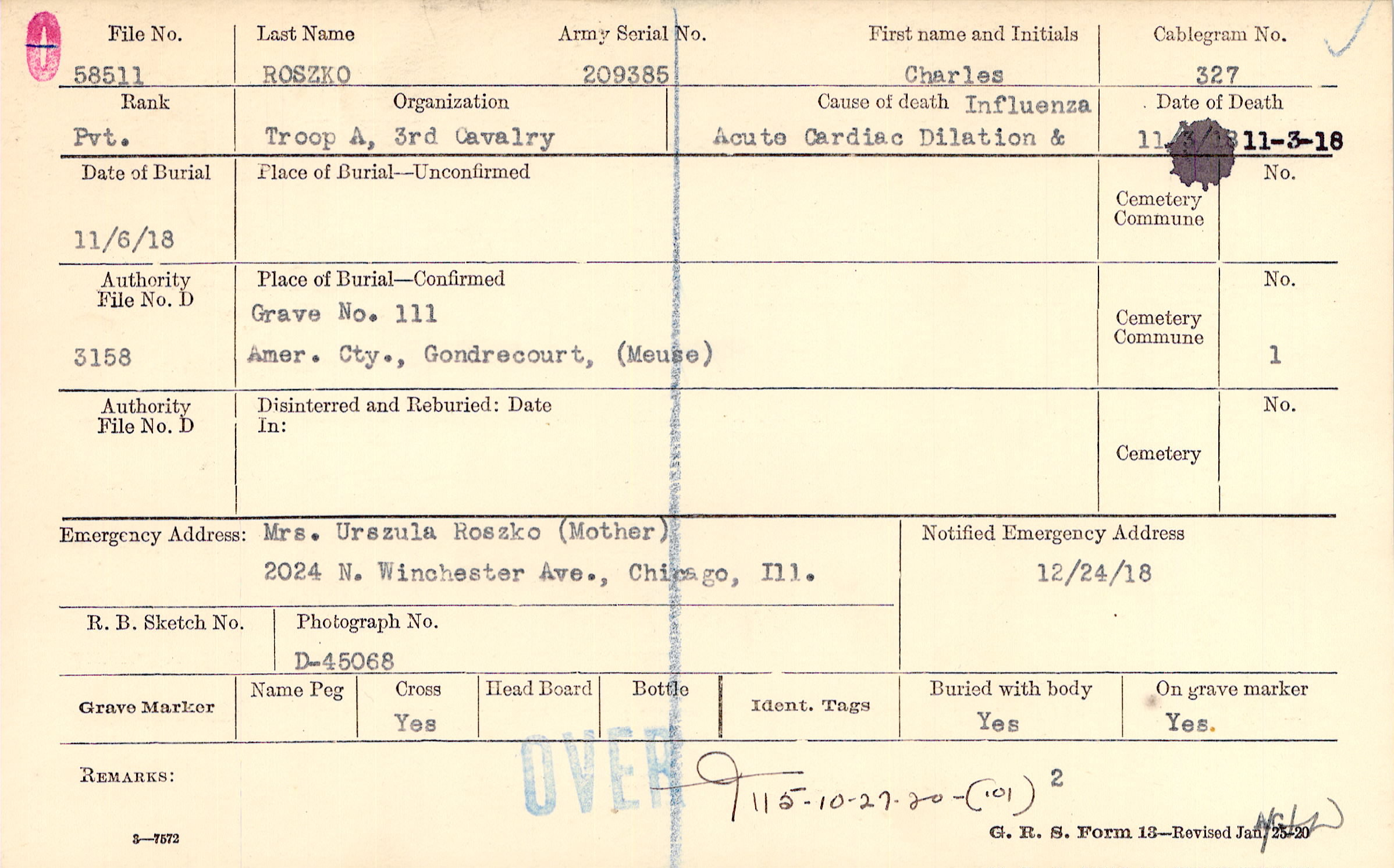 Grave 111, Amer. Cty., Gondrecourt, Meuse