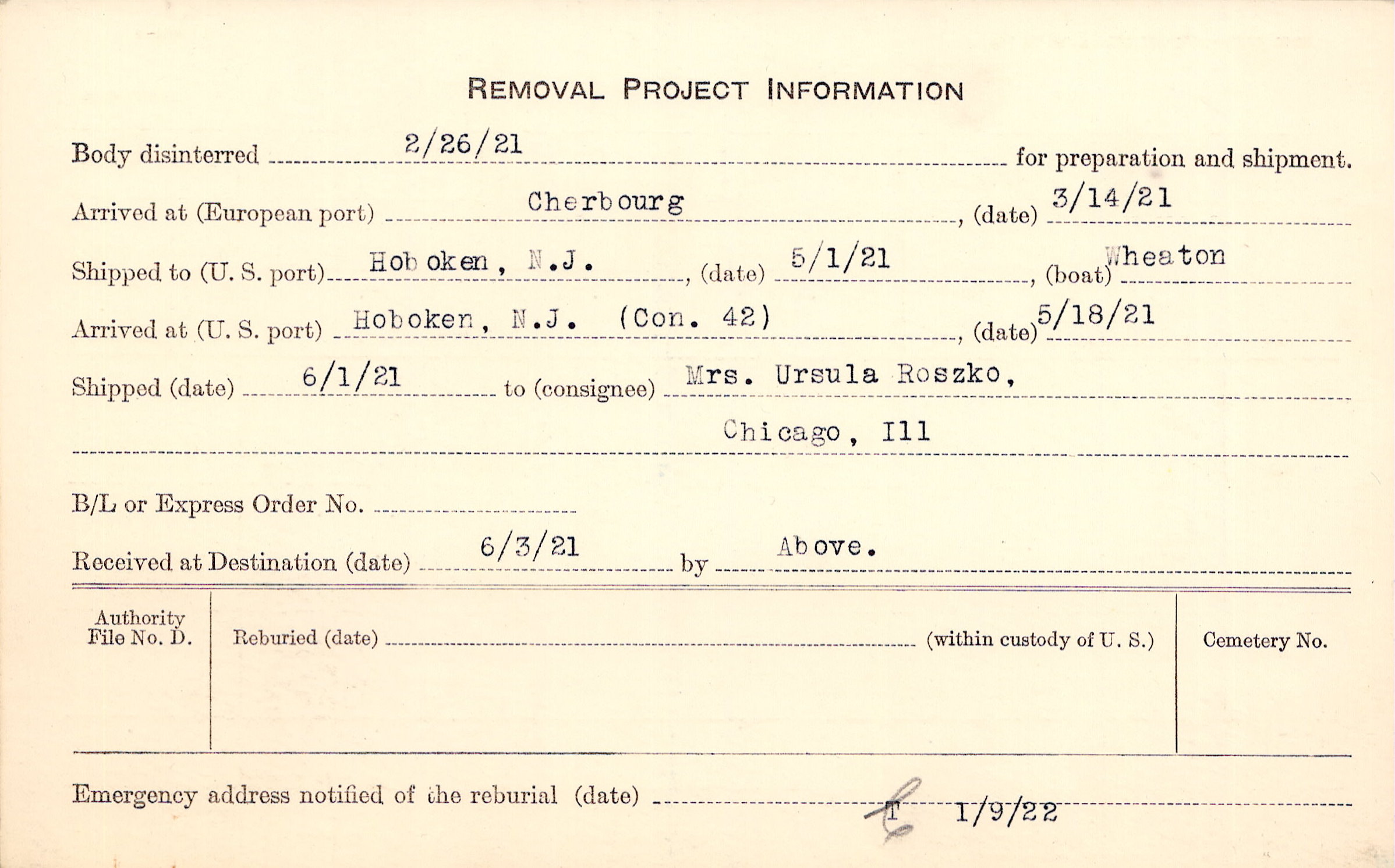 to Mrs. Ursula Roszko, Chicago, Ill.