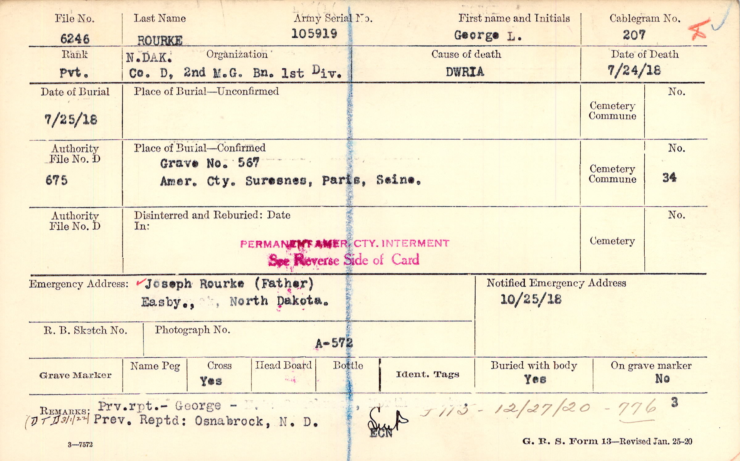 Joseph Rourke (Father), Easby., North Dakota.