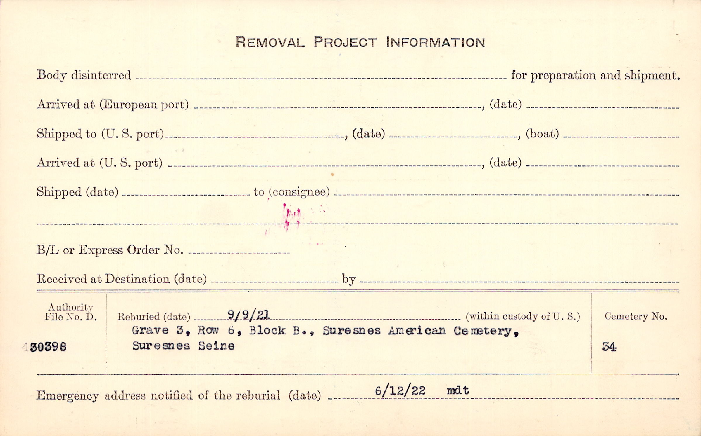 | Reburied (date): |