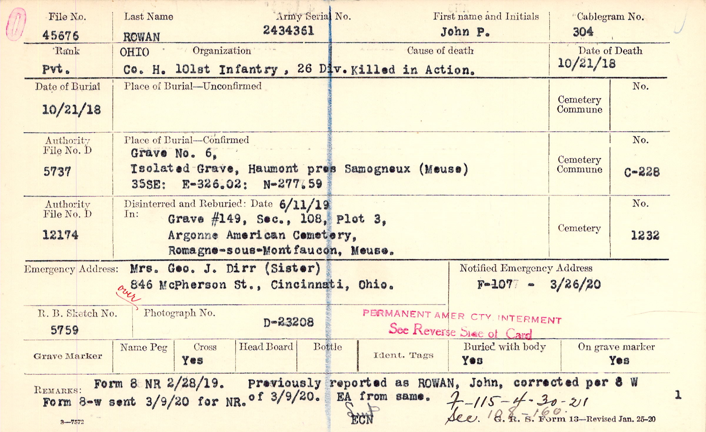 Previously reported as ROWAN, John, corrected per 8 W of 3/9/20. EA from same., Form 8 NR 2/28/19 Previously reported as ROWAN, John, corrected per 8 W of 3/9/20. EA from same. Form 8-w sent 3/9/20 for NR., F - 115 - 4-30-21 Sec 108 - 160