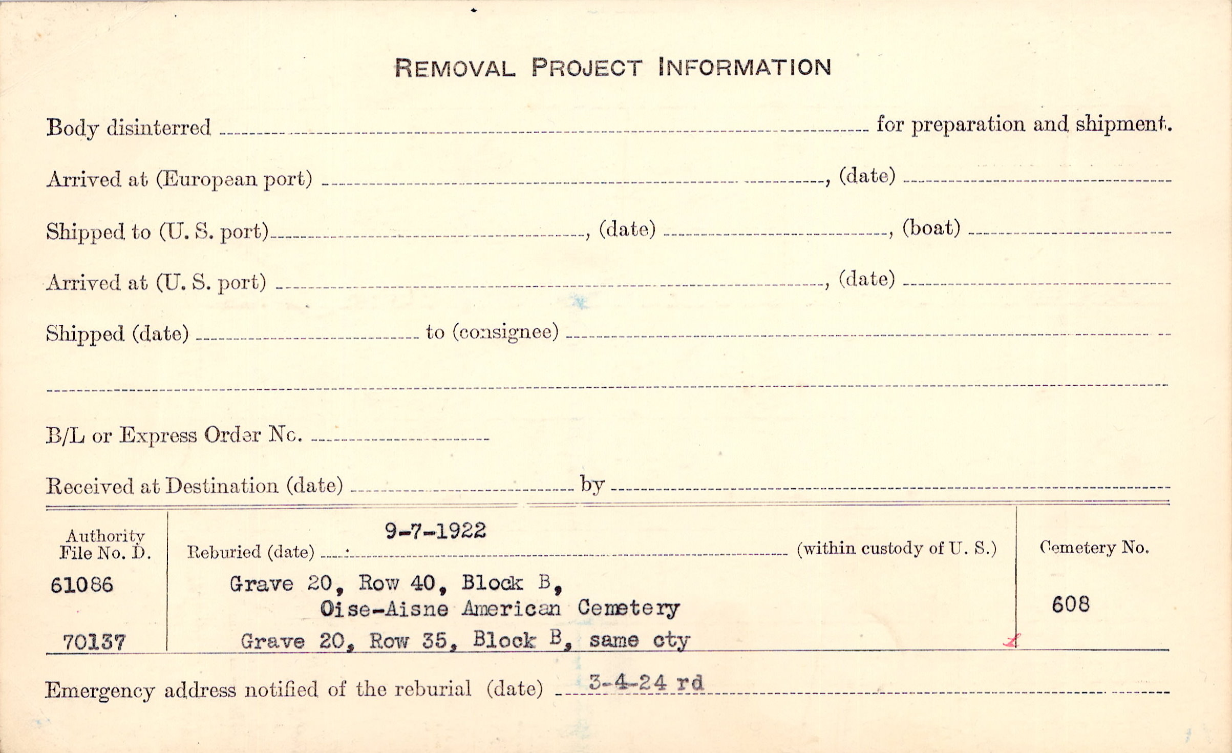 Prior Burial in Foreign Cemetery |