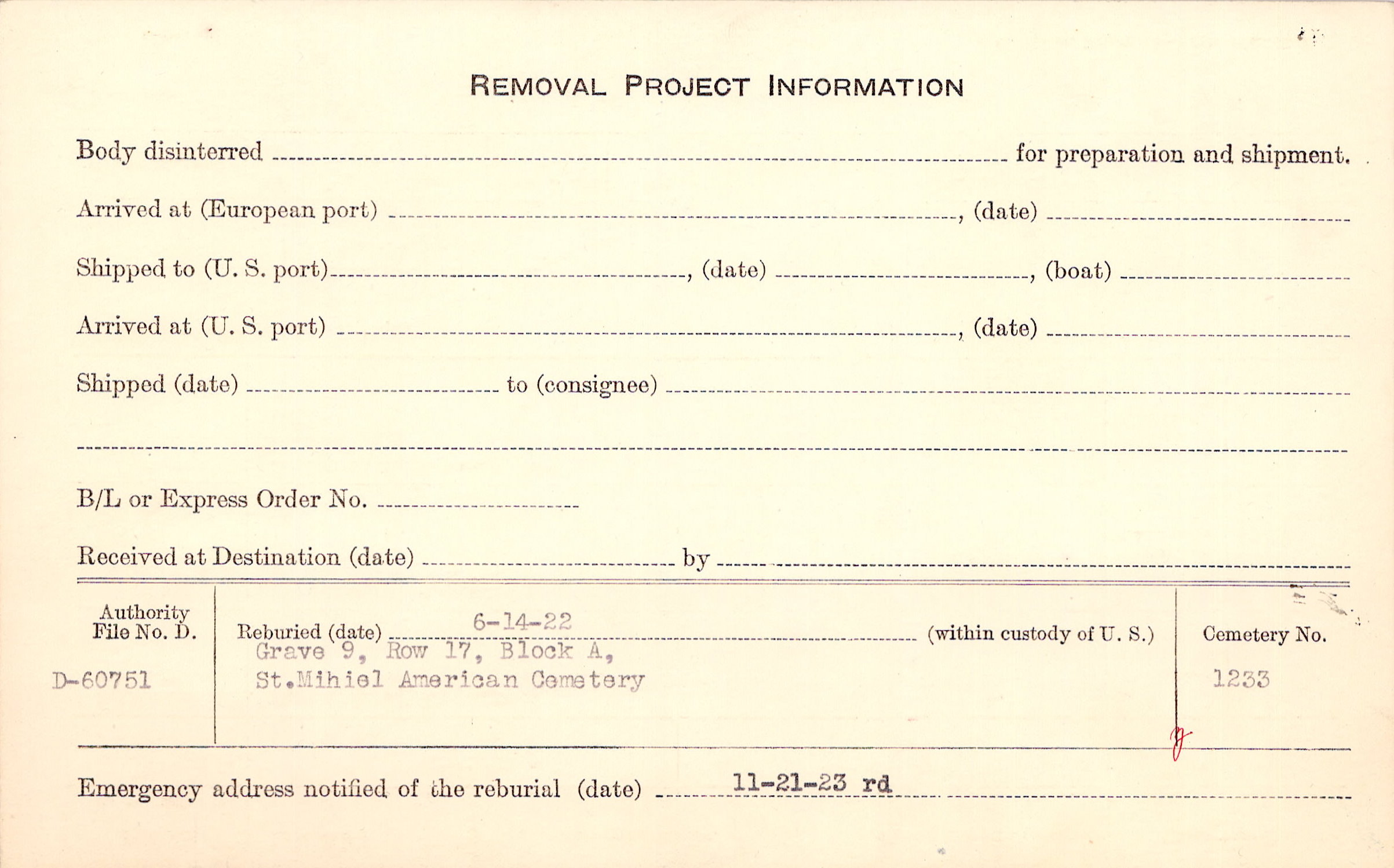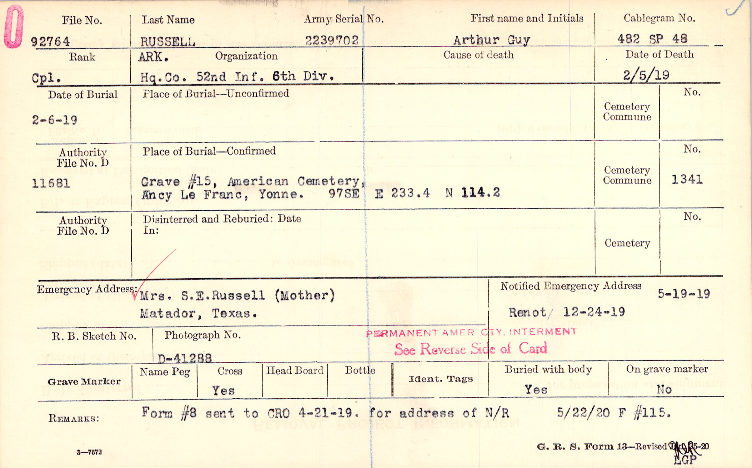 Grave #15, American Cemetery, Ancy Le Franc, Yonne., 97SE