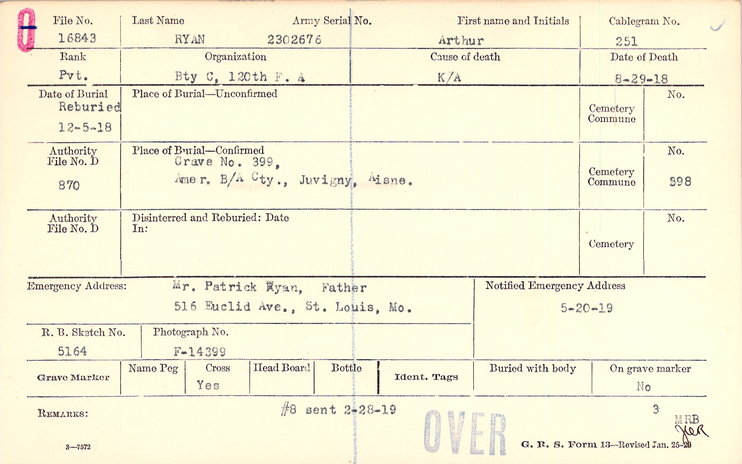 Mr. Patrick Ryan, Father, 516 Euclid Ave., St. Louis, Mo.