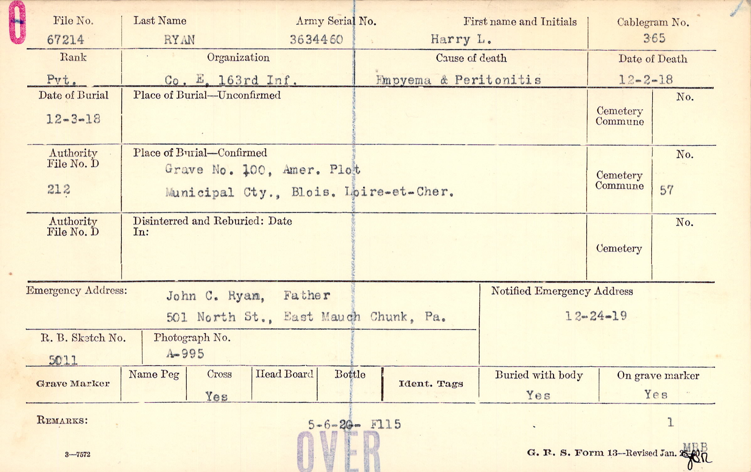 John C. Ryan, Father, 501 North St., East Mauch Chunk, Pa.