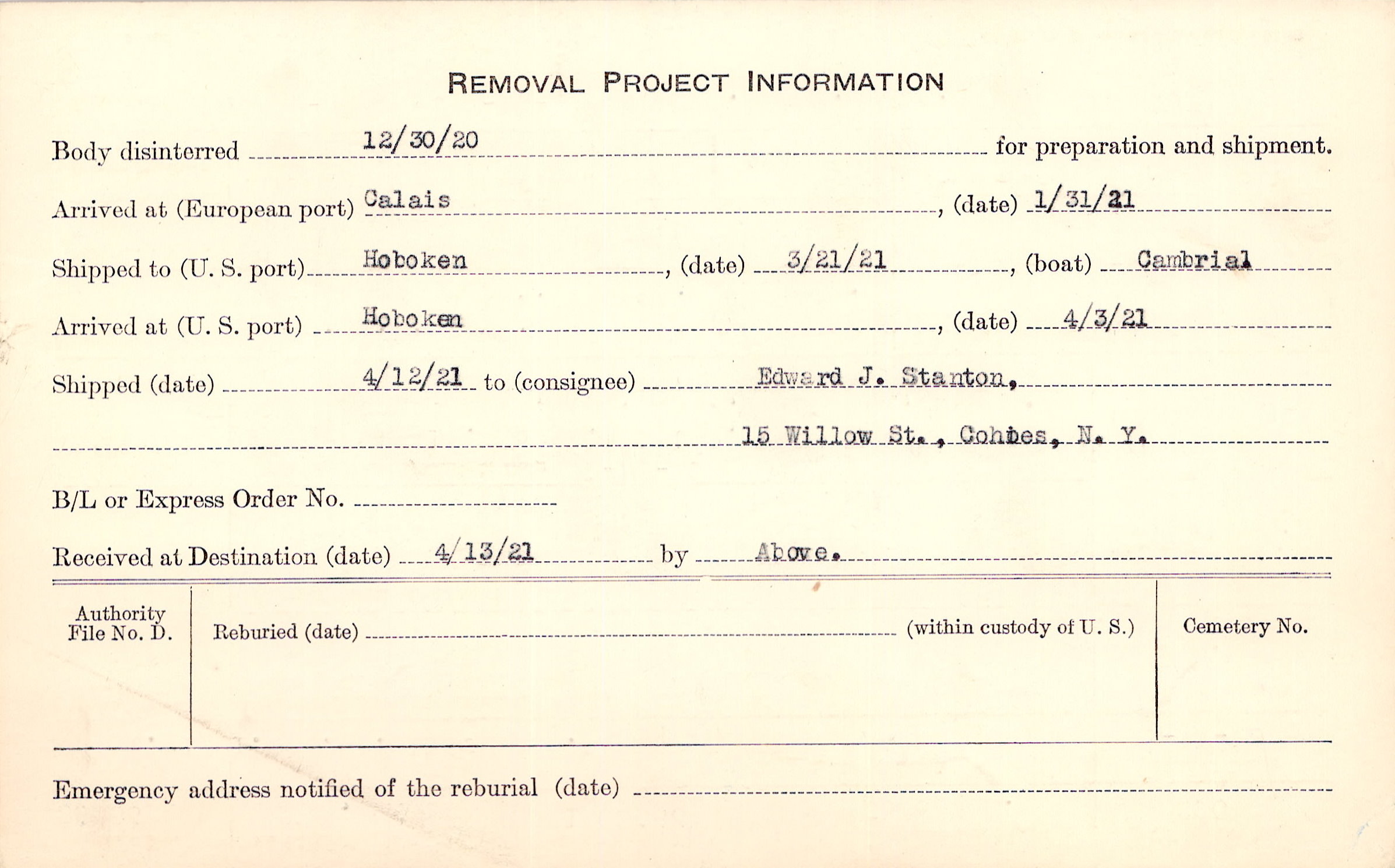 to Edward J. Stanton, 15 Willow St., Cohoes, N.Y.