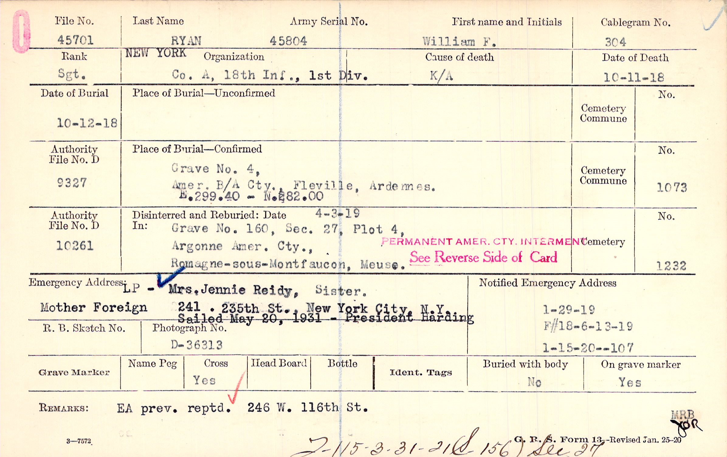 Mrs. Jennie Reidy, Sister., 241 . 235th St., New York City, N.Y., LP Mother Foreign Sailed May 20, 1931 - President Harding