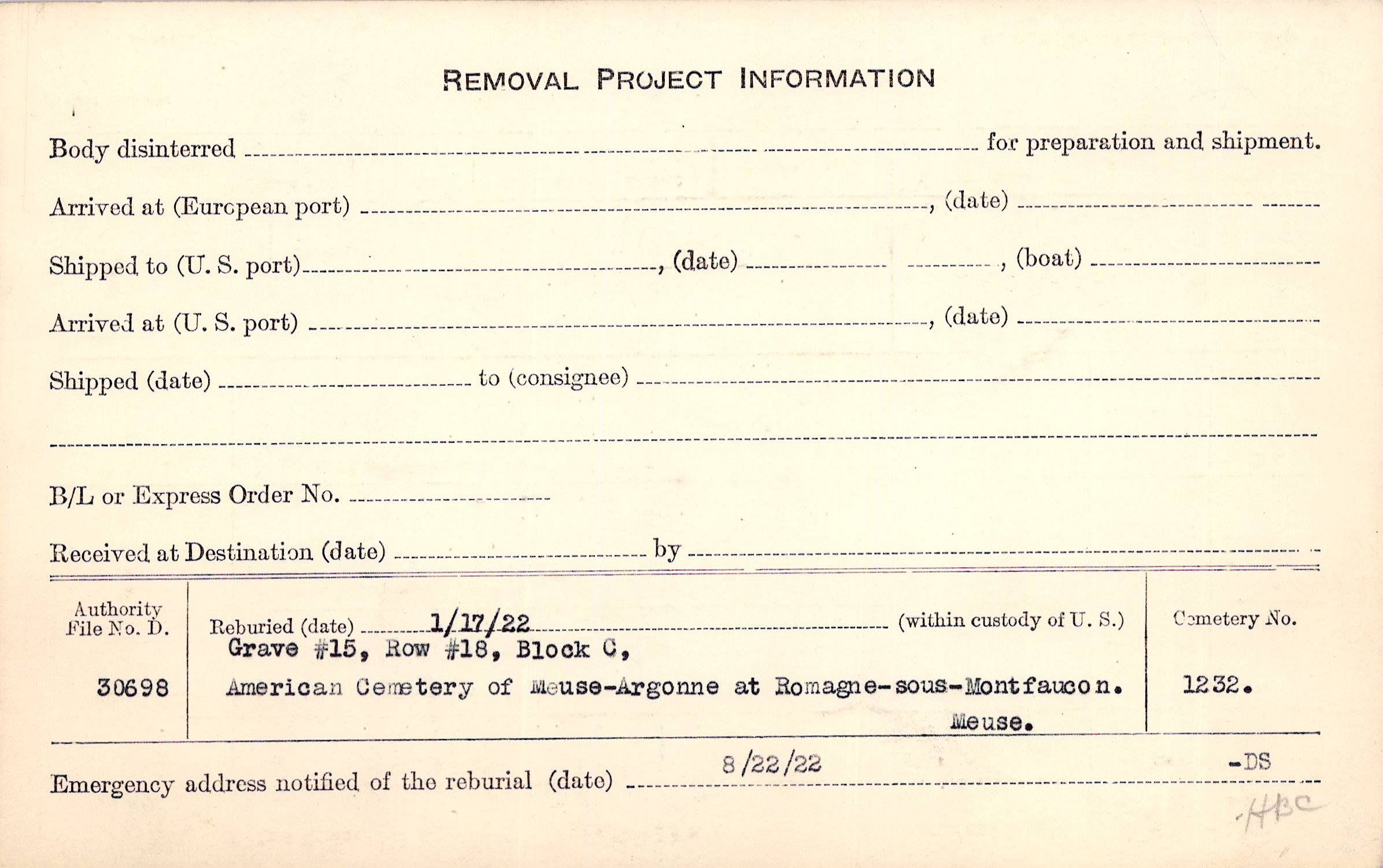 | Permanent Burial in Foreign Cemetery |
