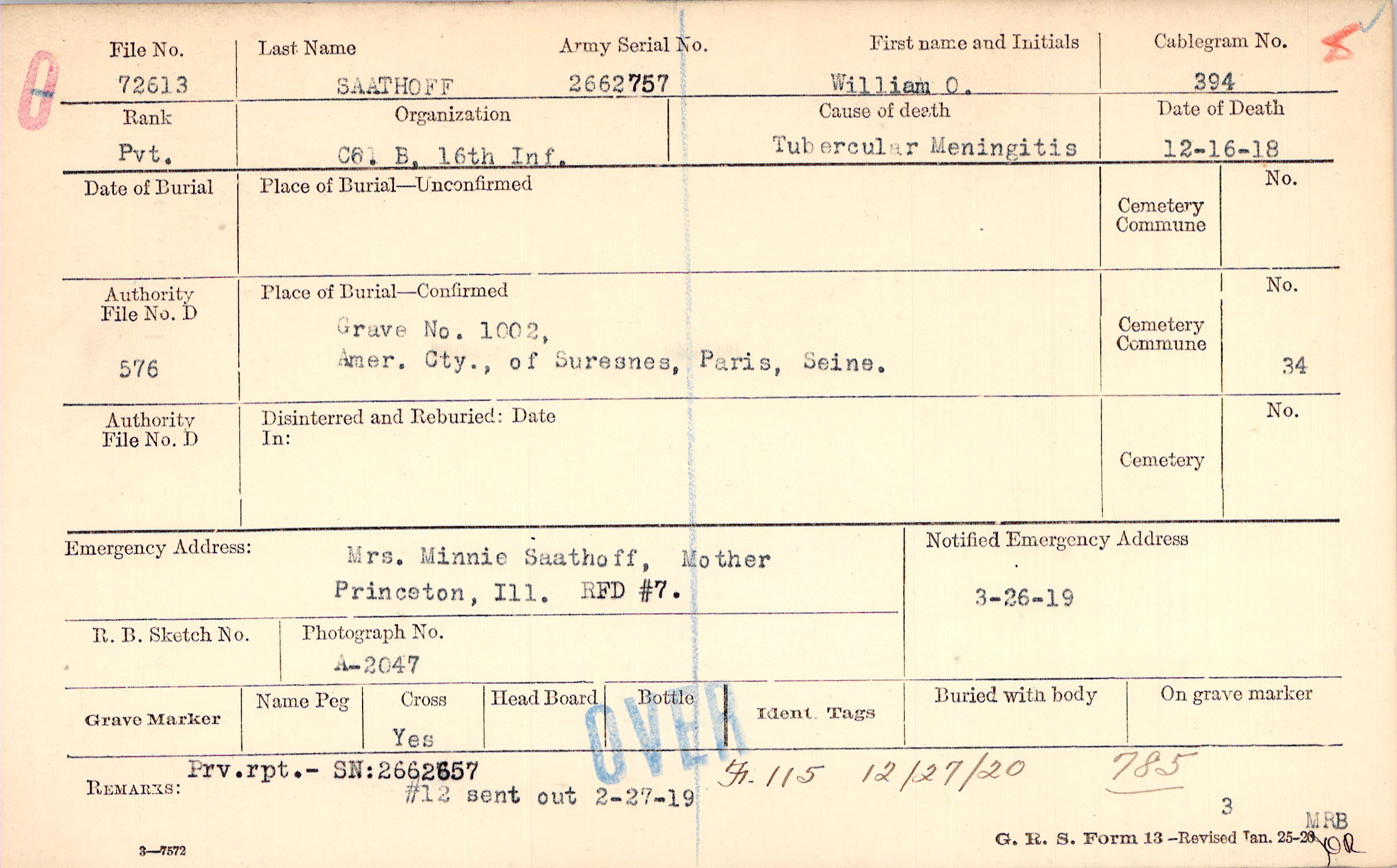 Grave 1002, Amer. Cty. of Suresnes, Paris, Seine