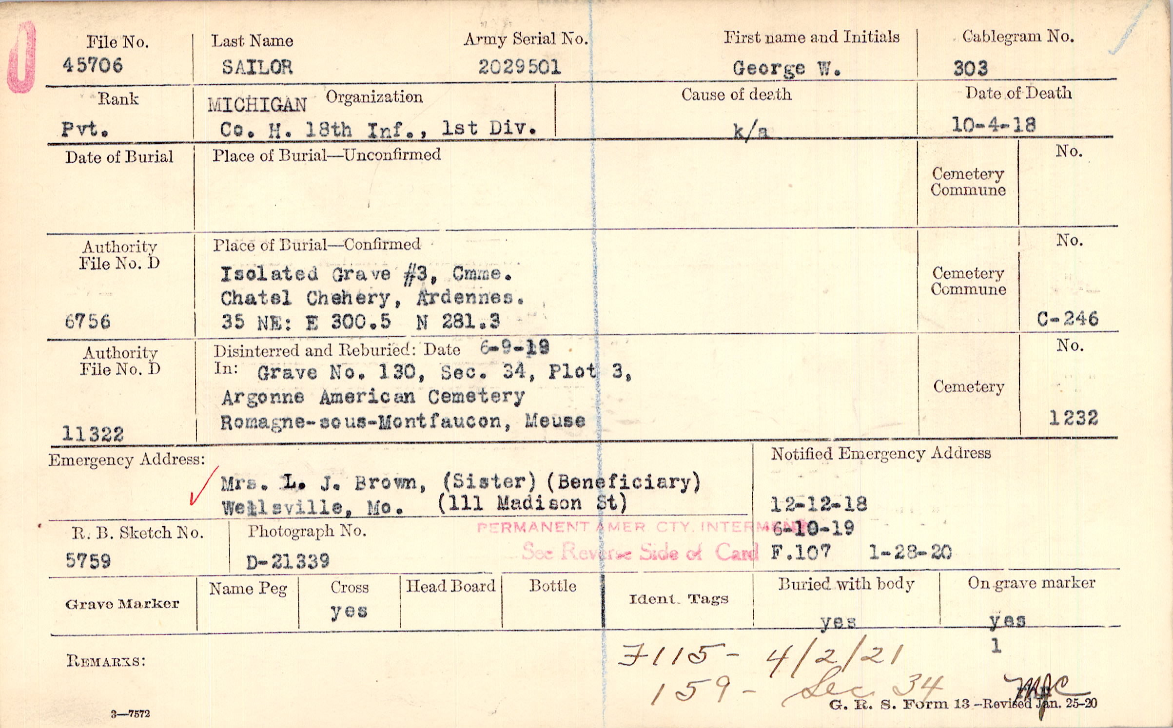 12/12/1918, 6/10/1919, Form 107: 1/28/1920