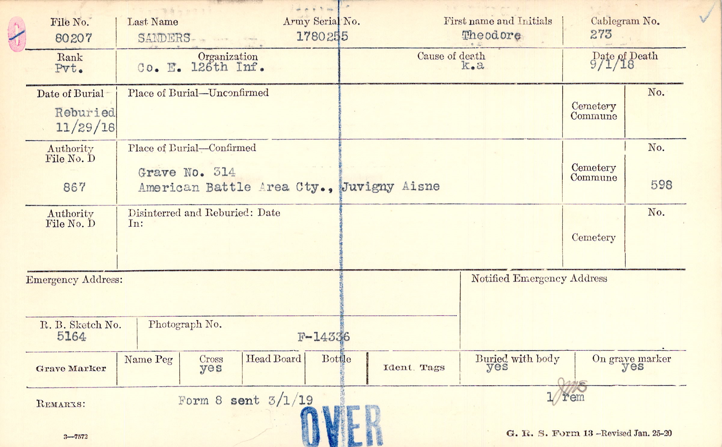 Grave 314, American Battle Area Cty., Juvigny, Aisne