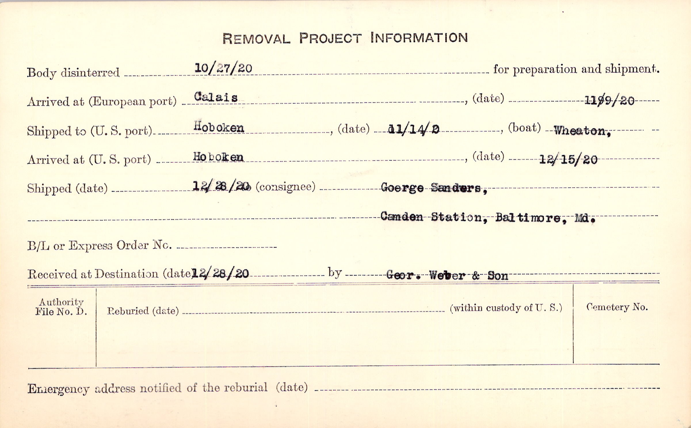 to Goerge Sanders, Camden Station, Baltimore, Md.