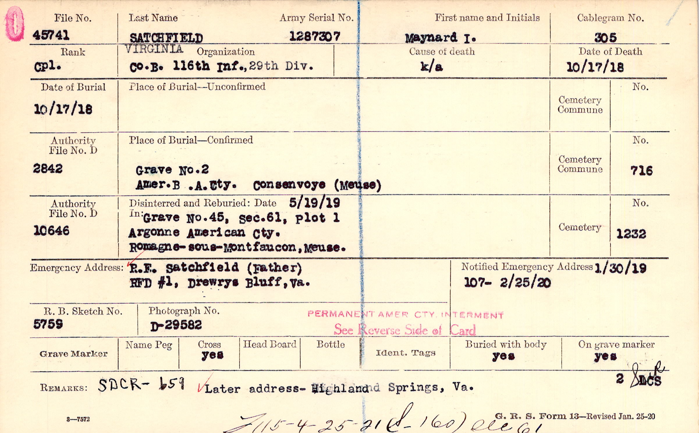 R.F. Satchfield (Father), RFD #1, Drewrys Bluff, Va.