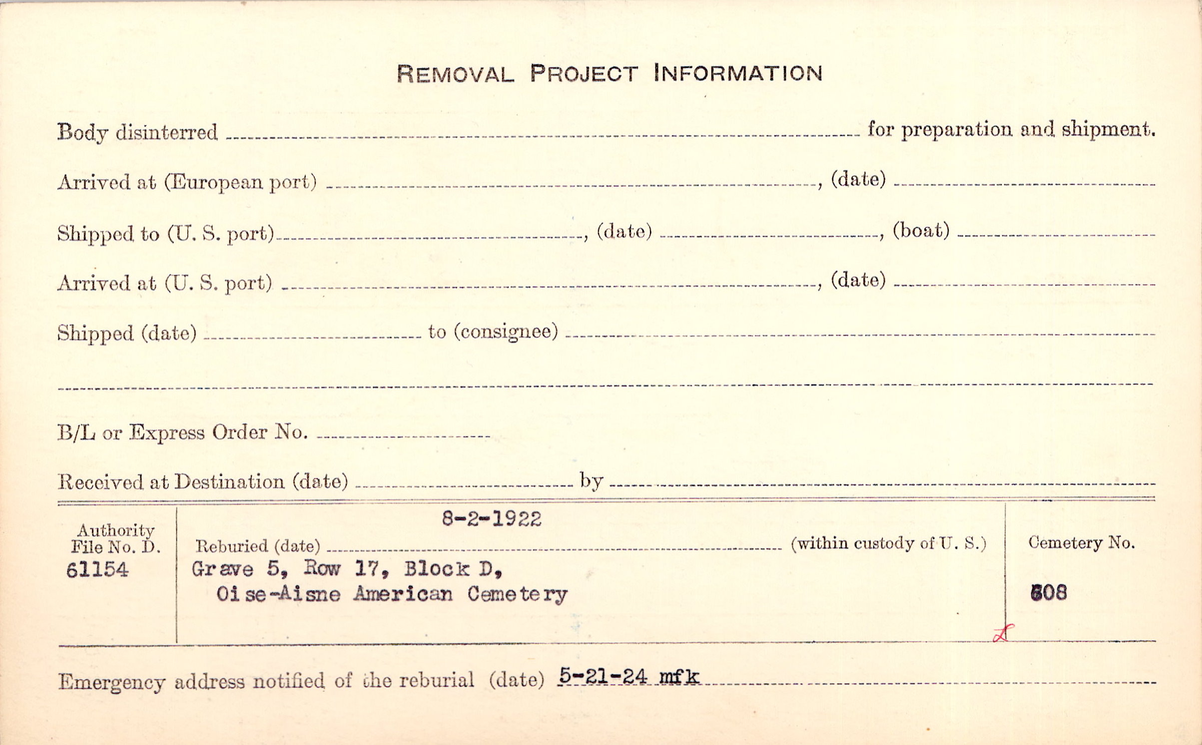 Grave 262, American B/ACty., Juvigny, Aisne, 33 NE