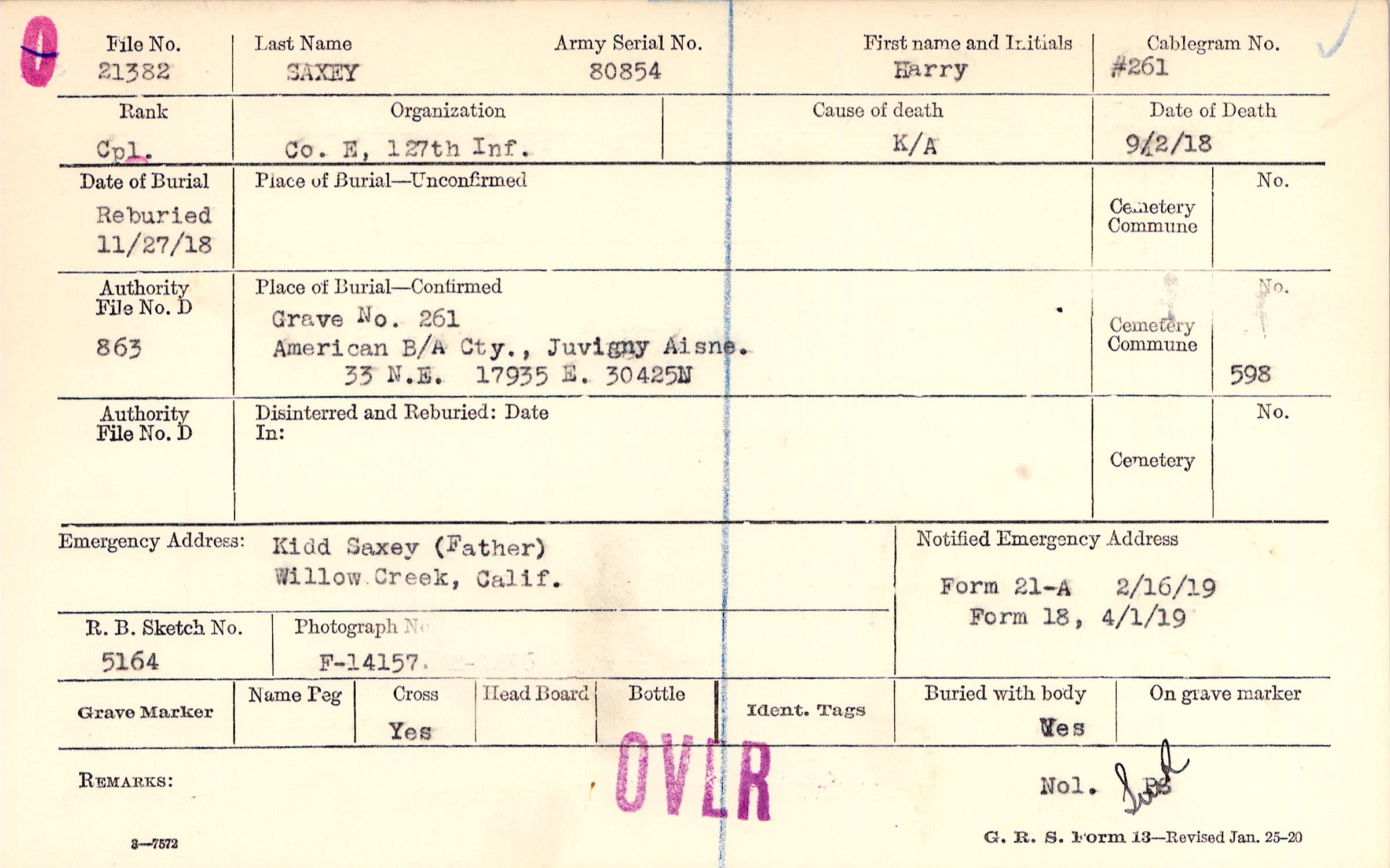 Grave 261, American B/A Cty., Juvigny, Aisne, 33 N.E.