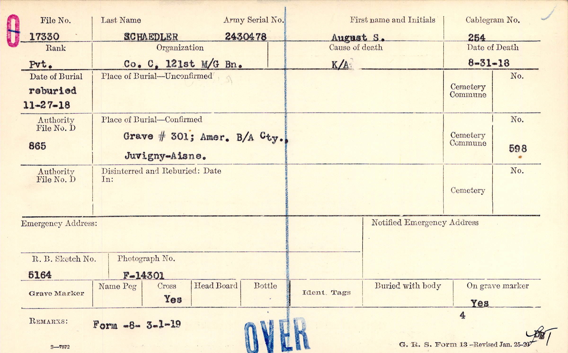 Grave #301, Amer. B/A Cty., Juvigny-Aisne.