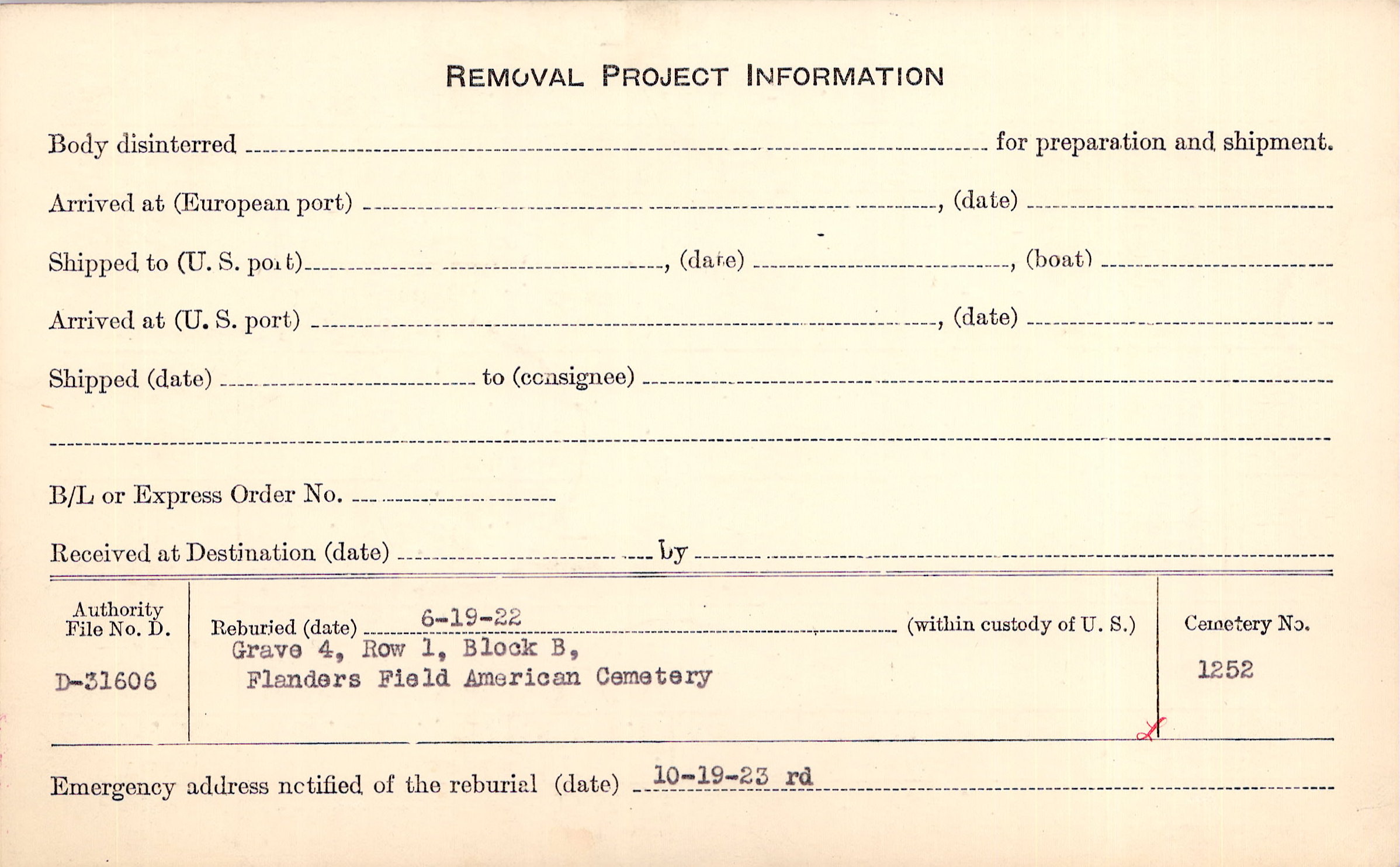 | Permanent Burial in Foreign Cemetery |