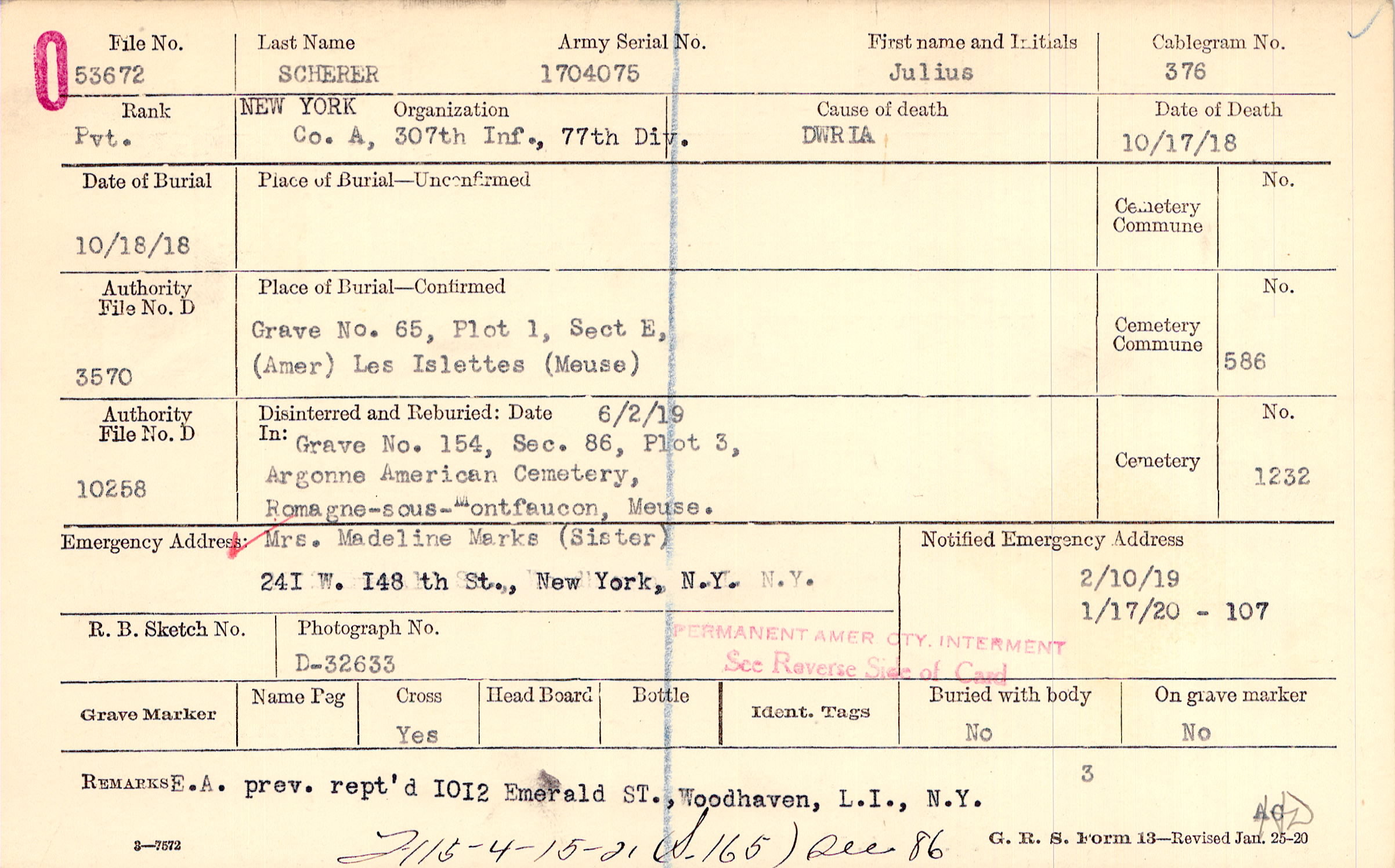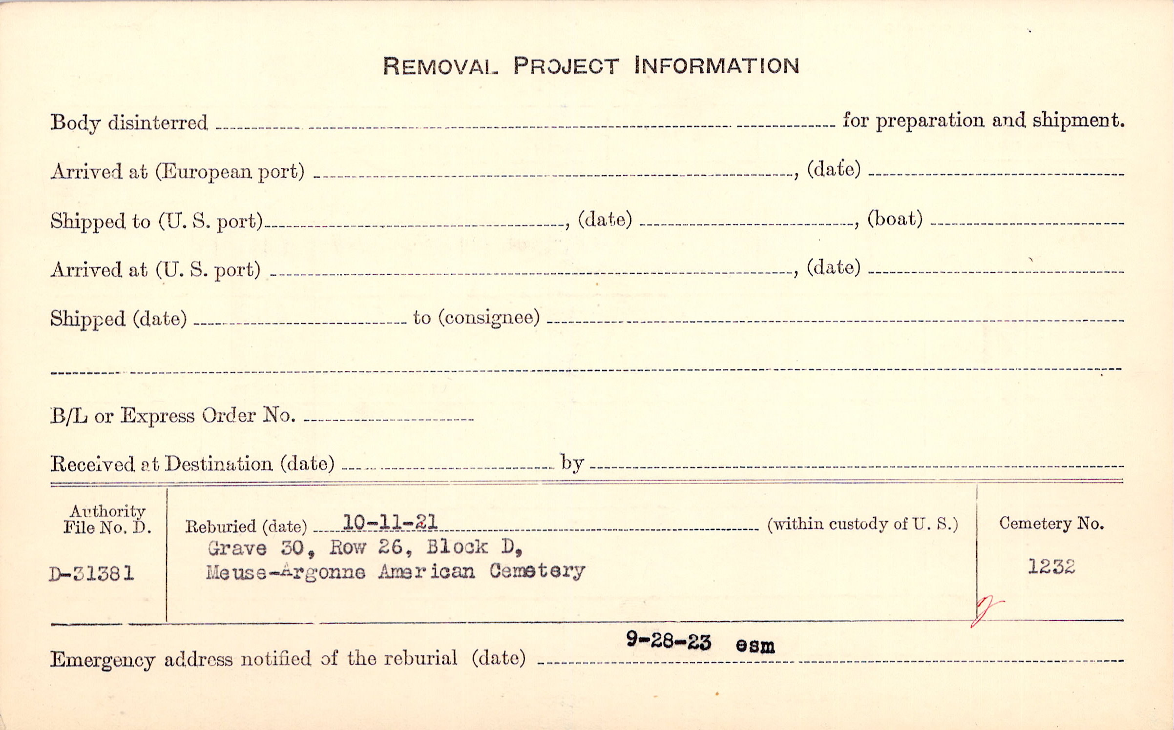 Grave 65, Plot 1, Sect. E, Amer. Les Islettes, Meuse.