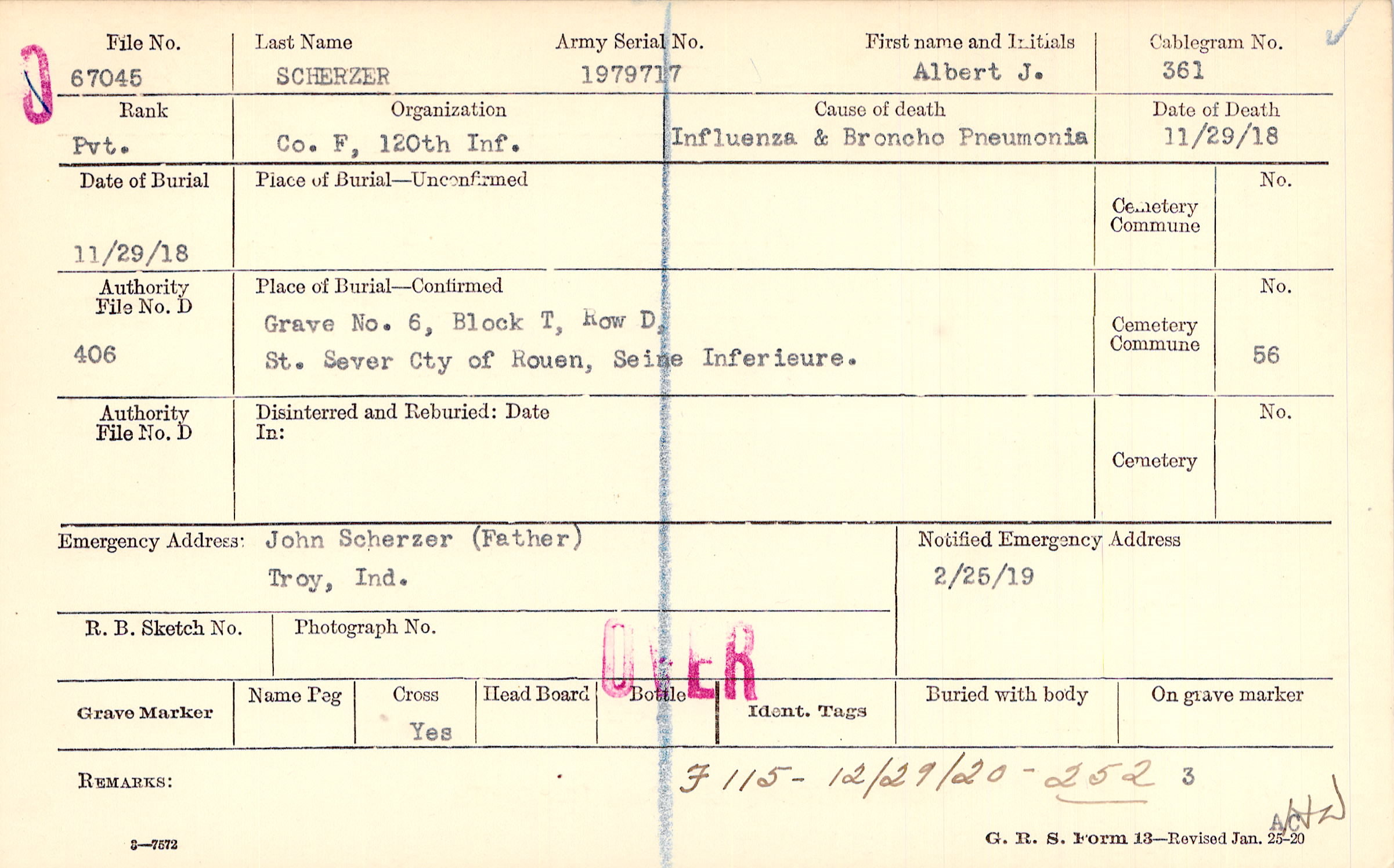 Grave 6, Block T, Row D, St. Sever Cty of Rouen, Seine Inferieure.