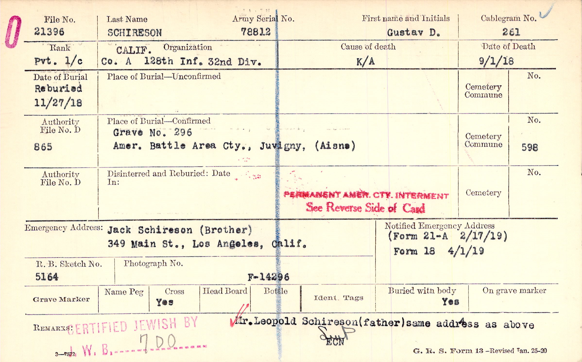 Jack Schireson (Brother), 349 Main St., Los Angeles, Calif.